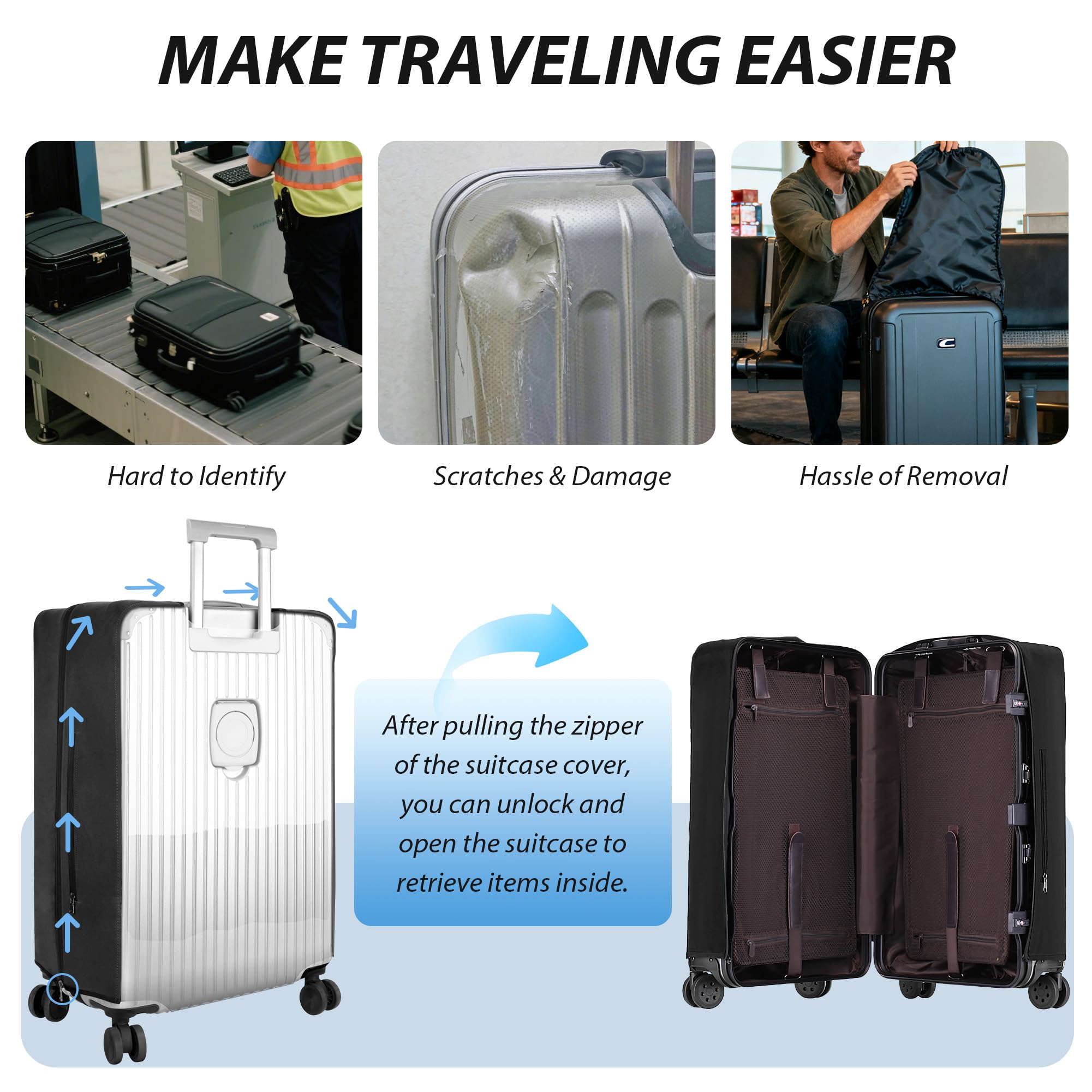 No need to dismantle: This luggage protector covers stands out from others because it eliminates the need for full removal. Unlike most conventional designs that must be taken off completely to access your belongings, this solution features a convenient side zipper. This allows you to open your suitcase and retrieve items effortlessly at any time, making travel much more convenient