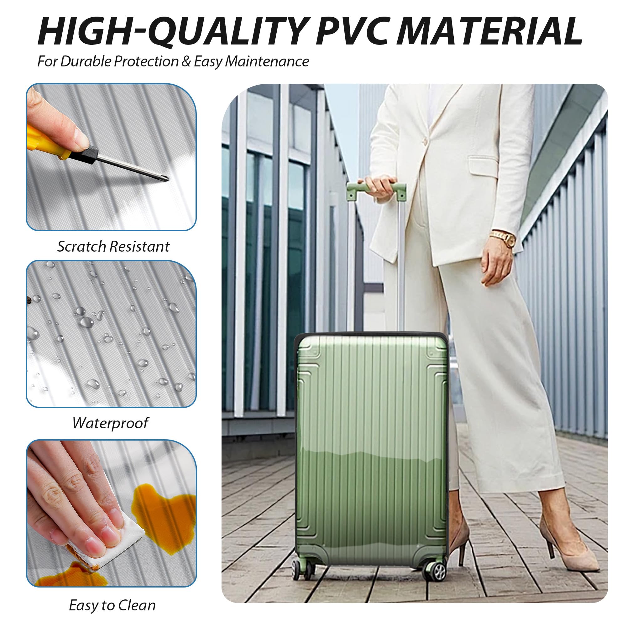 High-Quality Materials: This suitcase cover is crafted from premium materials for superior performance. The front panel is made of high-quality PVC, offering strong waterproof capabilities. The sides are constructed from thickened, high-grade elastic fabric that ensures a snug fit and enhanced protection. In addition, all materials are drop-resistant and scratch-resistant, guaranteeing durable protection without compromising on aesthetics.