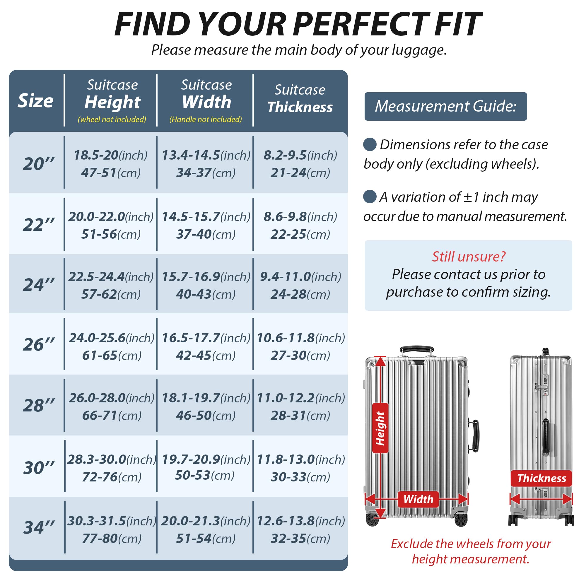 Please Note: Please measure your luggage size carefully, please do not include the wheel height when measuring the luggage height, applicable to most major luggage brands!