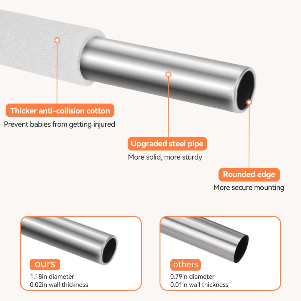 [Safety and Sturdy Accessories]: The structure of large baby playpen is stable since the thickened steel pipes will not deform, the upgraded connectors prevent fracture, and the strong suction cups are non-slip. Furthermore, the 150D Oxford cloth and inner cotton cover are tear-resistant, plus the pad corner protection, which guards your baby in all aspects.