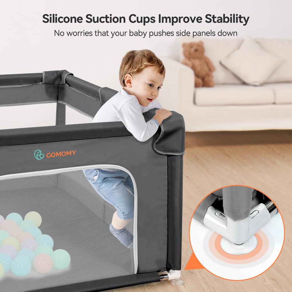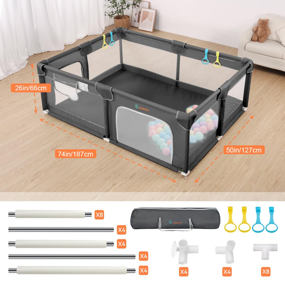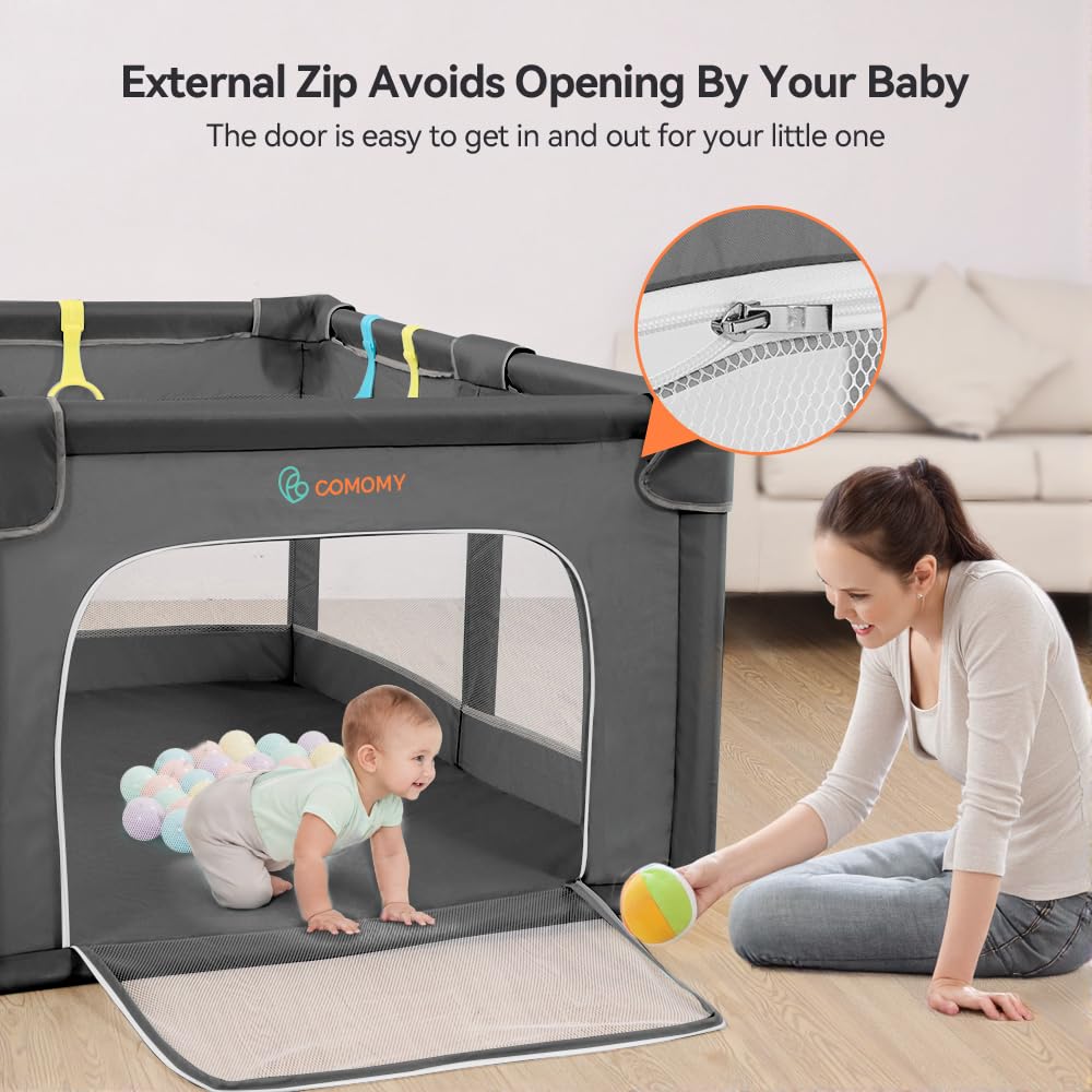 [Liberate Your Hands]: The Comomy baby gate playpen creates a secure play space for your baby and keeps the baby away from dangerous situations. You can watch your baby playing in the play yards while working or doing housework or other things. Enjoy yourself!