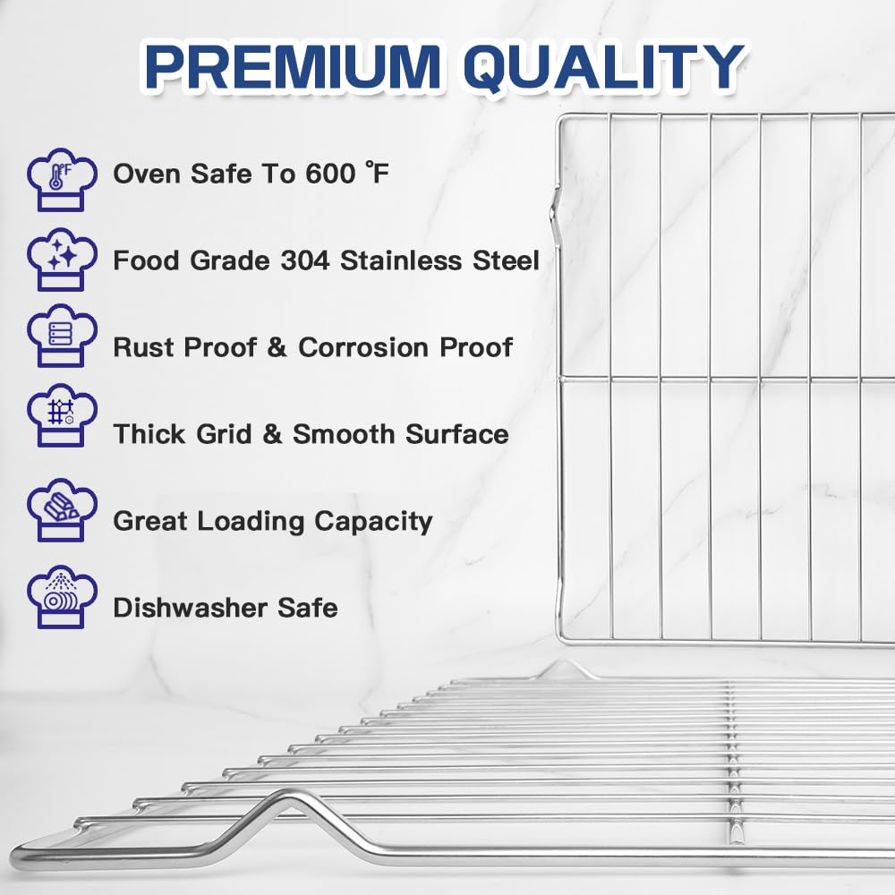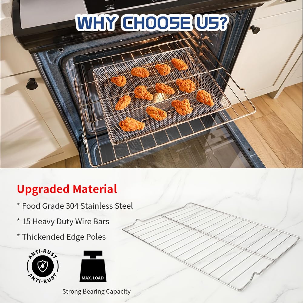 ✔ UPGRADED VERSION - The Range Oven Rack is made of standard food-grade superior stainless steel, which is durable and rustproof. The thick grid can bear the weight better and is not easy to break. Strictly required to meet or even exceed OEM specifications.