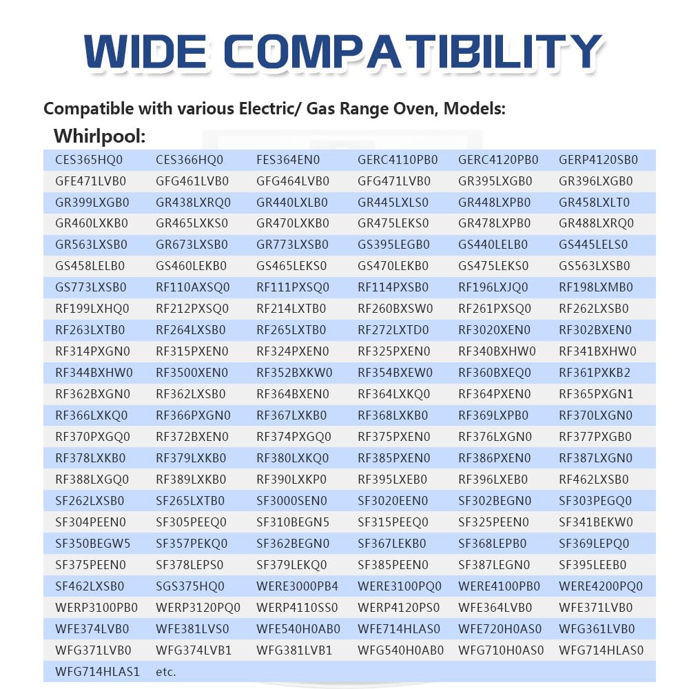✔ WIDE APPLICABILITY - This Oven Rack fits for various Whirlpool Range/Stove/Oven, and models begin with : 6657, 6659, AER5, AGR, CES, CGS, FEP3, FES3, FGP3, FGS3, GERC4, GERP4, GFG4, GR39, GR4, GR5, GR6, GR7, GS3, GS4, GS5, GS7, IEP, IES, IGS, IME, IRE, IRP, KER, KGR, MER, MGR, RF1, RF2, RF3, RF4, RME3, SF2, SF3, TEP3, TES3, TGP3, TGS3, WER, WFE, WFG, YKER, YMER. If you are not sure whether the product is compatible with your range, please feel free to contact us, we will help you confirm it.