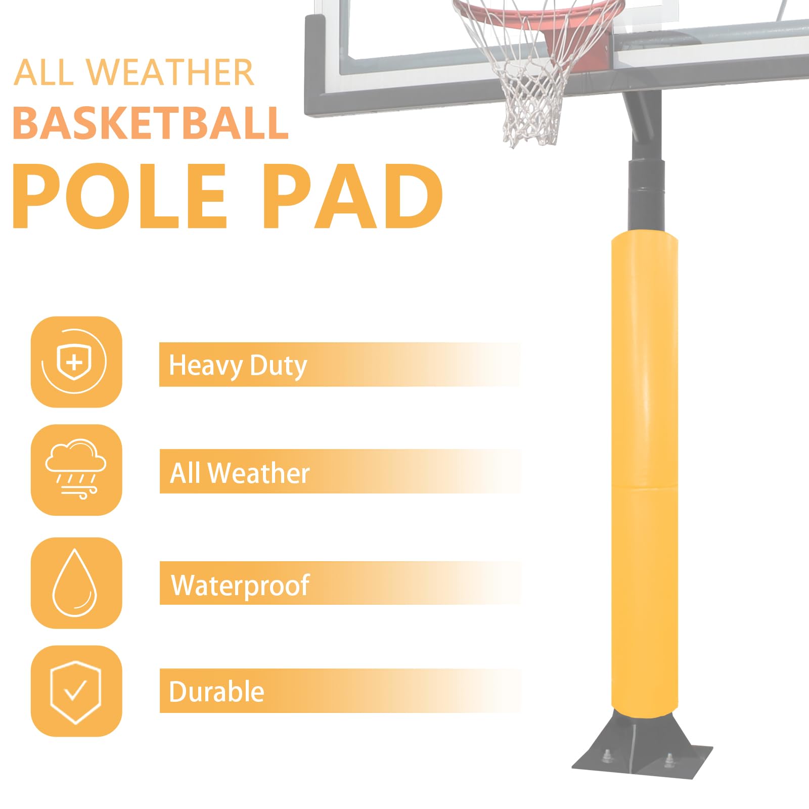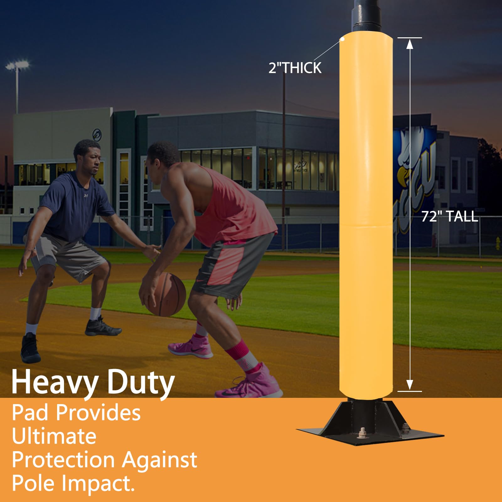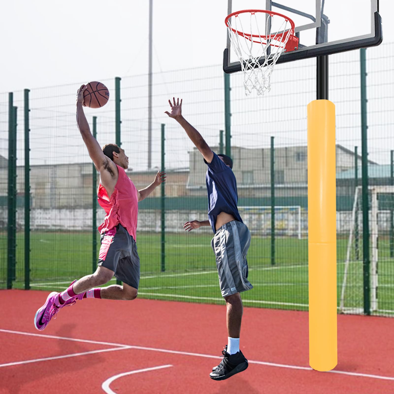 PLAYER PROTECTION — Basketball pole pad provides protection and safety for players during aggressive, rough play.