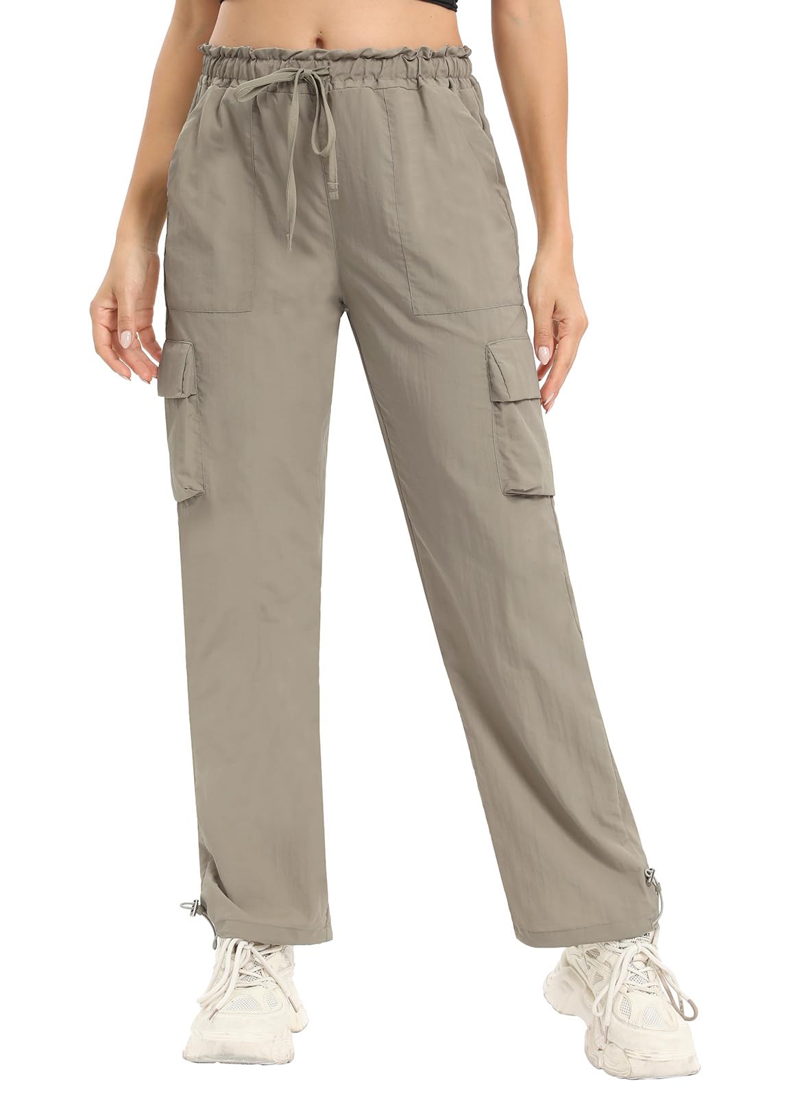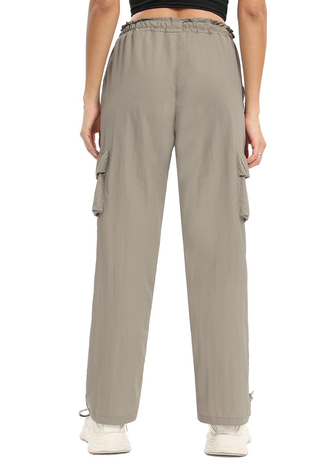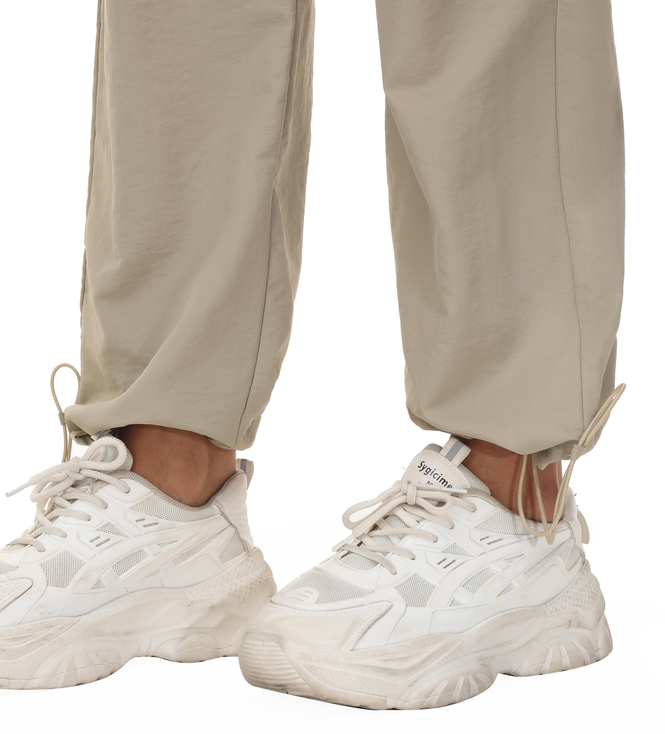 Y2k parachute pants with drawstring at waist and hem to adjust the fit and length