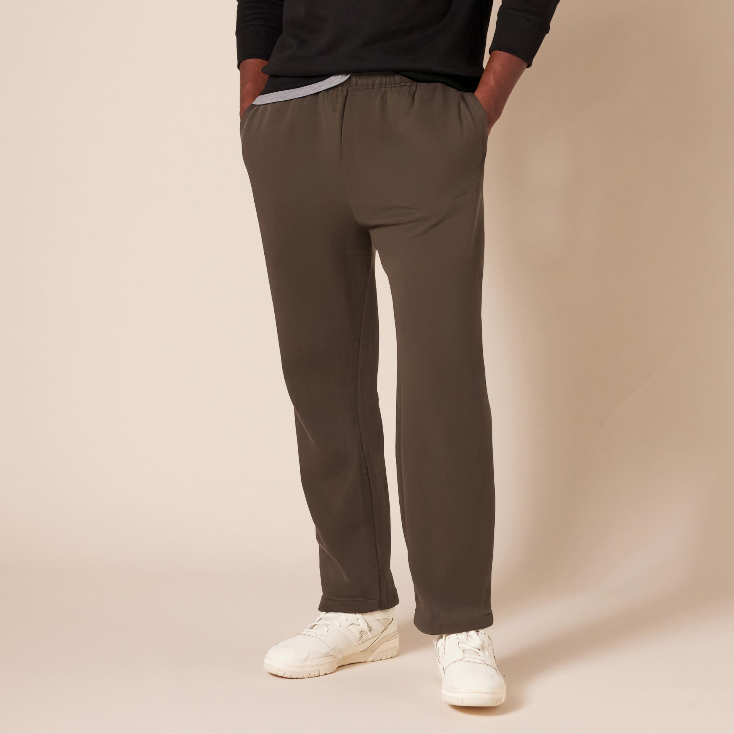 Description An Amazon Brand - A relaxed straight leg and elastic, drawstring waistband bring lounge-ready style to this classic casual pant