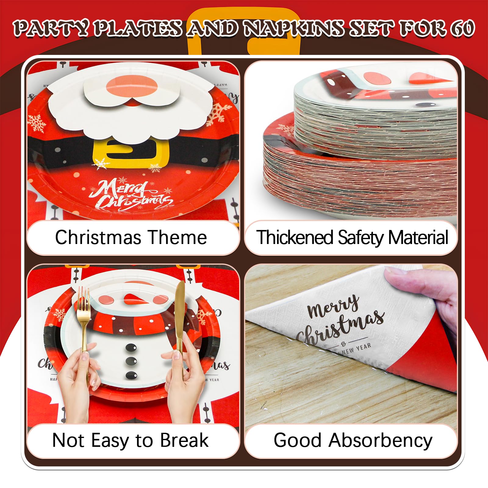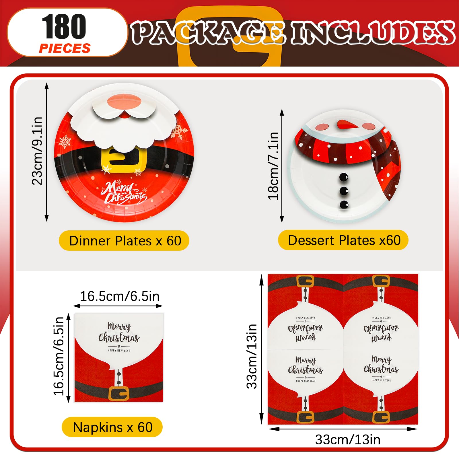 180 Pcs Plates and Napkins Set: This set includes 60 dinner plates (9.1"), 60 dessert plates (7.1"), and 60 napkins, perfect for serving up to 60 guests. From casual dinners to large celebrations, this all-in-one solution ensures a stylish, hassle-free dining experience every time