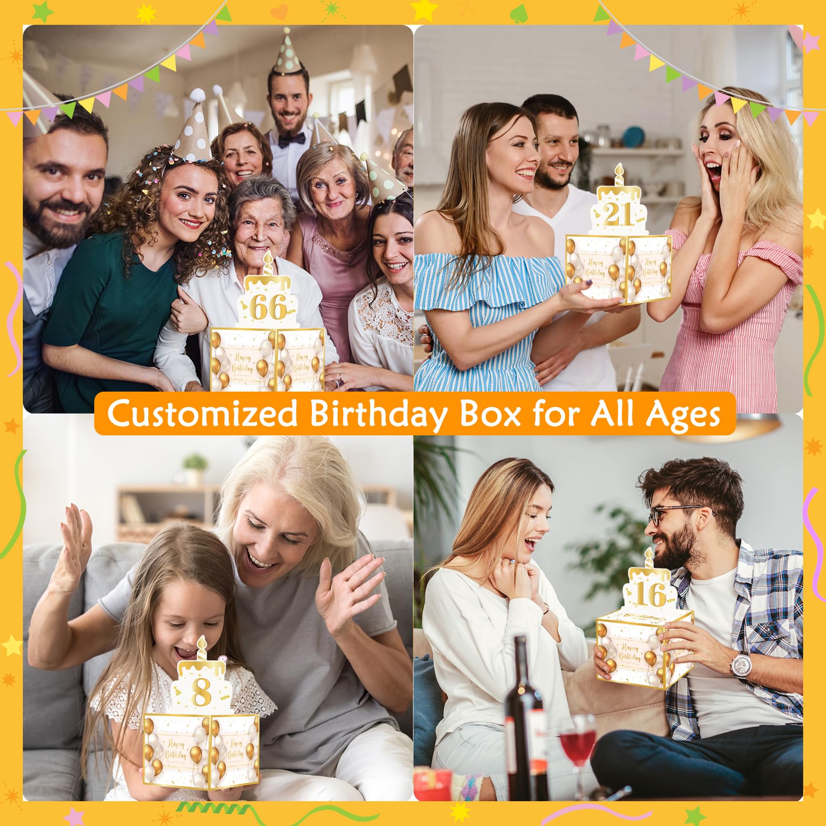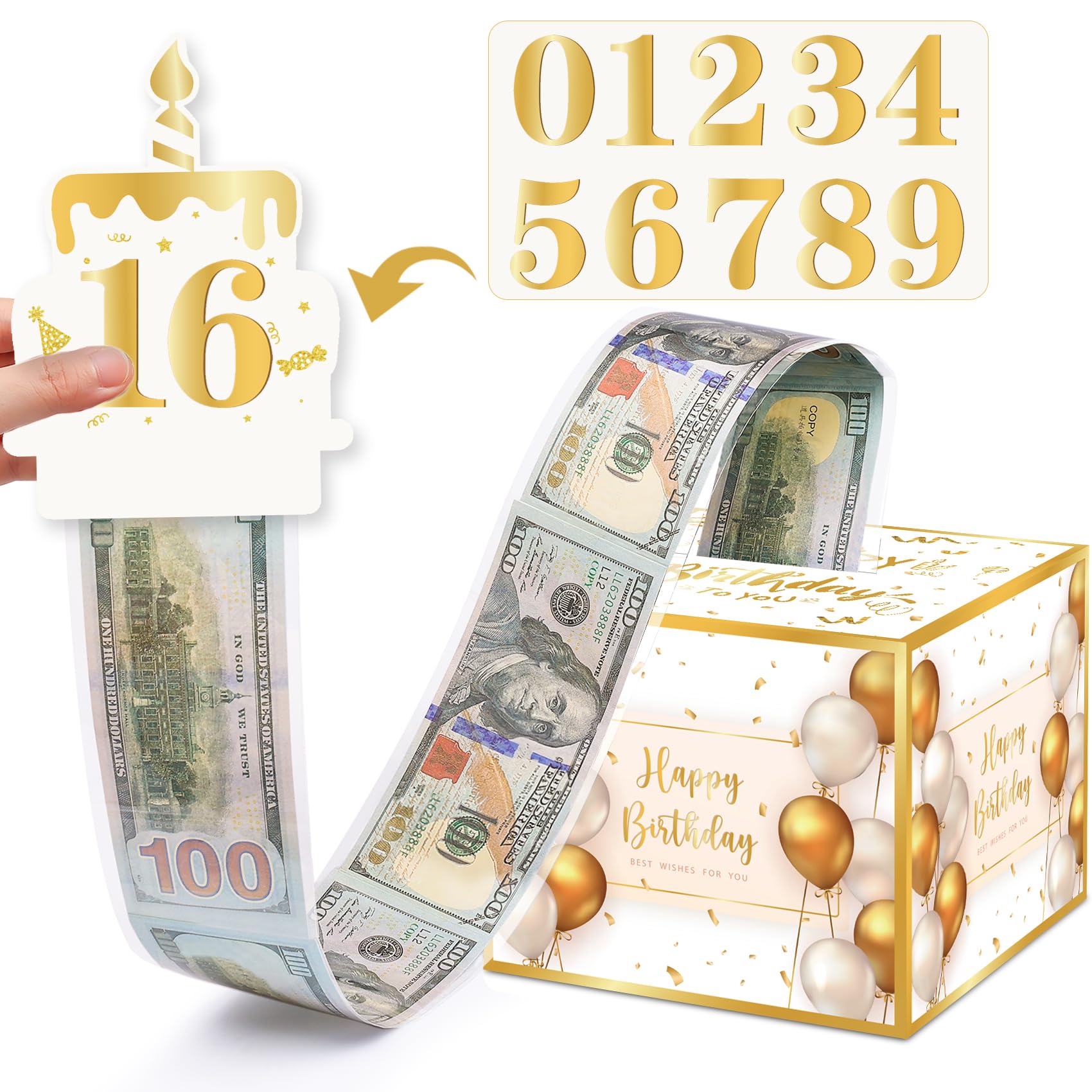 Package You Received: Including a beautiful "Happy Birthday" money gift box, a happy birthday cake card, 2pcs DIY Stickers (for any age) and 50 plastic bags with adhesive strips. You can DIY this birthday money box and put any cash in it as a cash gift to your family and friends. Imagine the faces of your family and friends when they opened the surprise gift box. This will be an unforgettable moment.