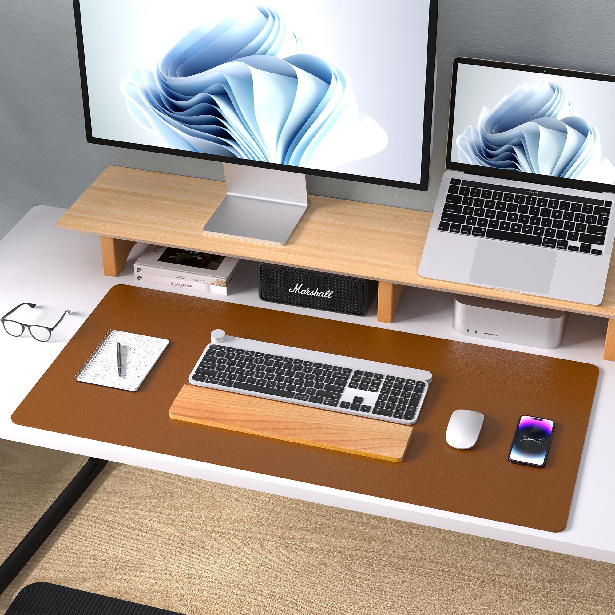 PROTECT YOUR DESK:Made of durable PU leather material, which protects your desk from scratches, stains, spills, heat and scuffs. It also gives your office a modern and professional atmosphere when you put it on your desktop. Its smooth surface will make you enjoy writing, typing and browsing. It is perfect for both office and home