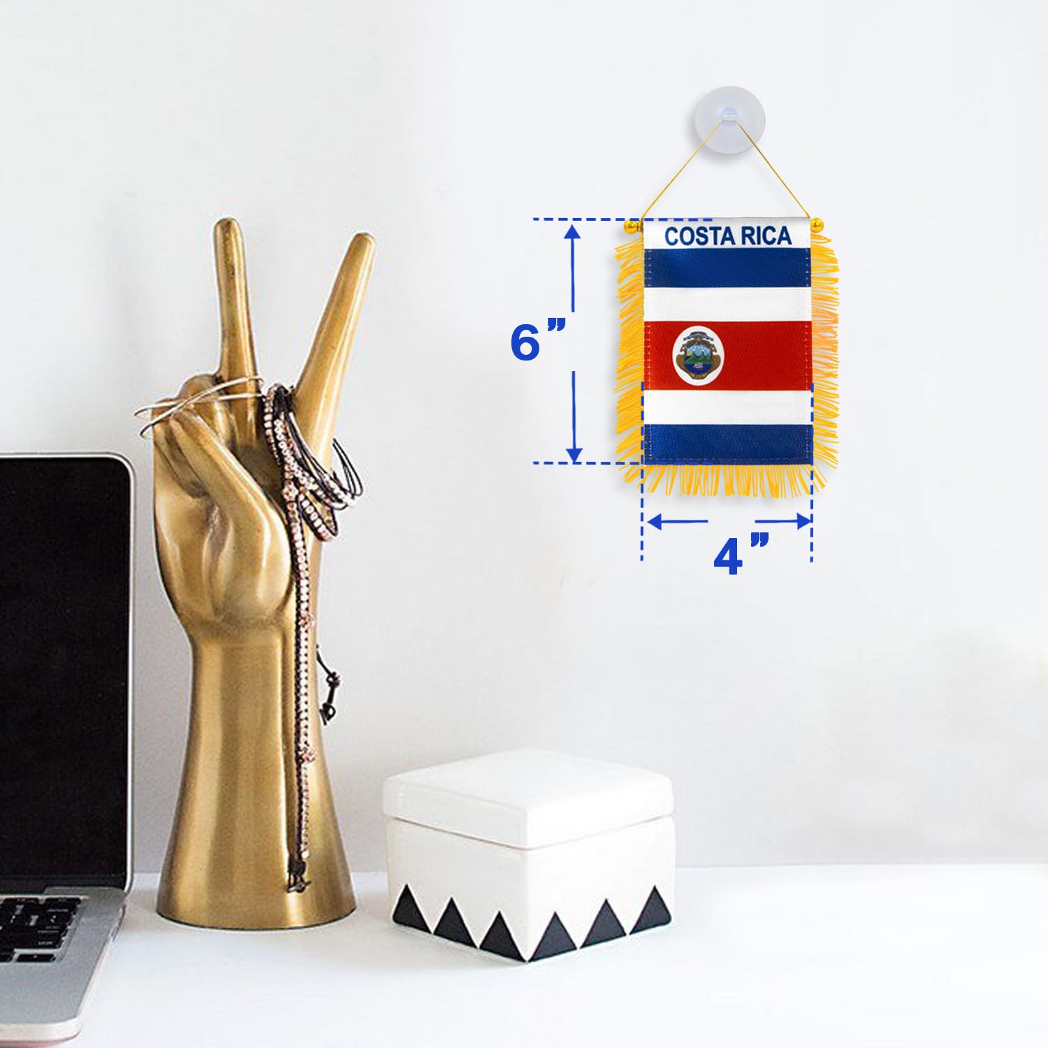 Anley 4 X 6 Inch Small Costa Rica Flag PREMIUM QUALITY Made in China. Individually double stitched all around the edge,not easy to fall apart. FADE RESISTANT The Color is Sharp and Vivid, evenly Colored On Both Sides and Without Color Difference. EASY TO USE Can mount directly over the rear view mirror or with suction hanger. Light & Compact The flag is 4 x 6 inches. Will work in all vehicle models. Special fabrics are more unique in the sun. Commitment We stand behind our products! Please feel free to contact us if you have any questions or concerns.