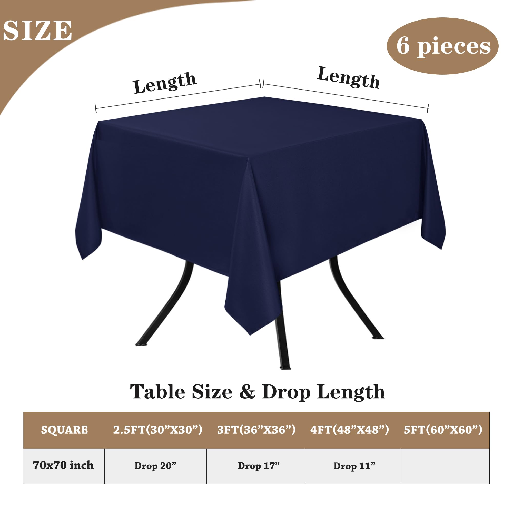 Versatile Size Options: Whether you have a rectangular, square, or round table, we've got you covered. Each package includes 6 pack of table clothes in various sizes to fit your needs perfectly.