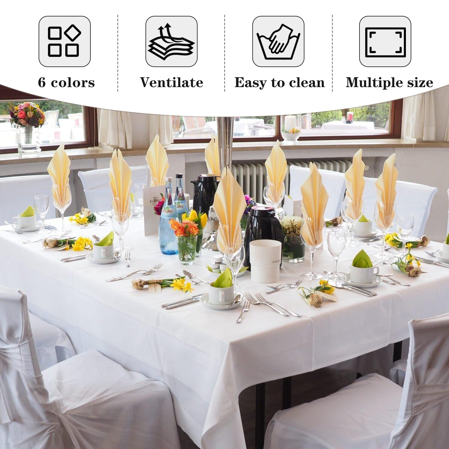 Stain Resistant Tablecloths: Don't worry about accidental spills or stains ruining your tables. Our classical tablecloths make cleanup a breeze.