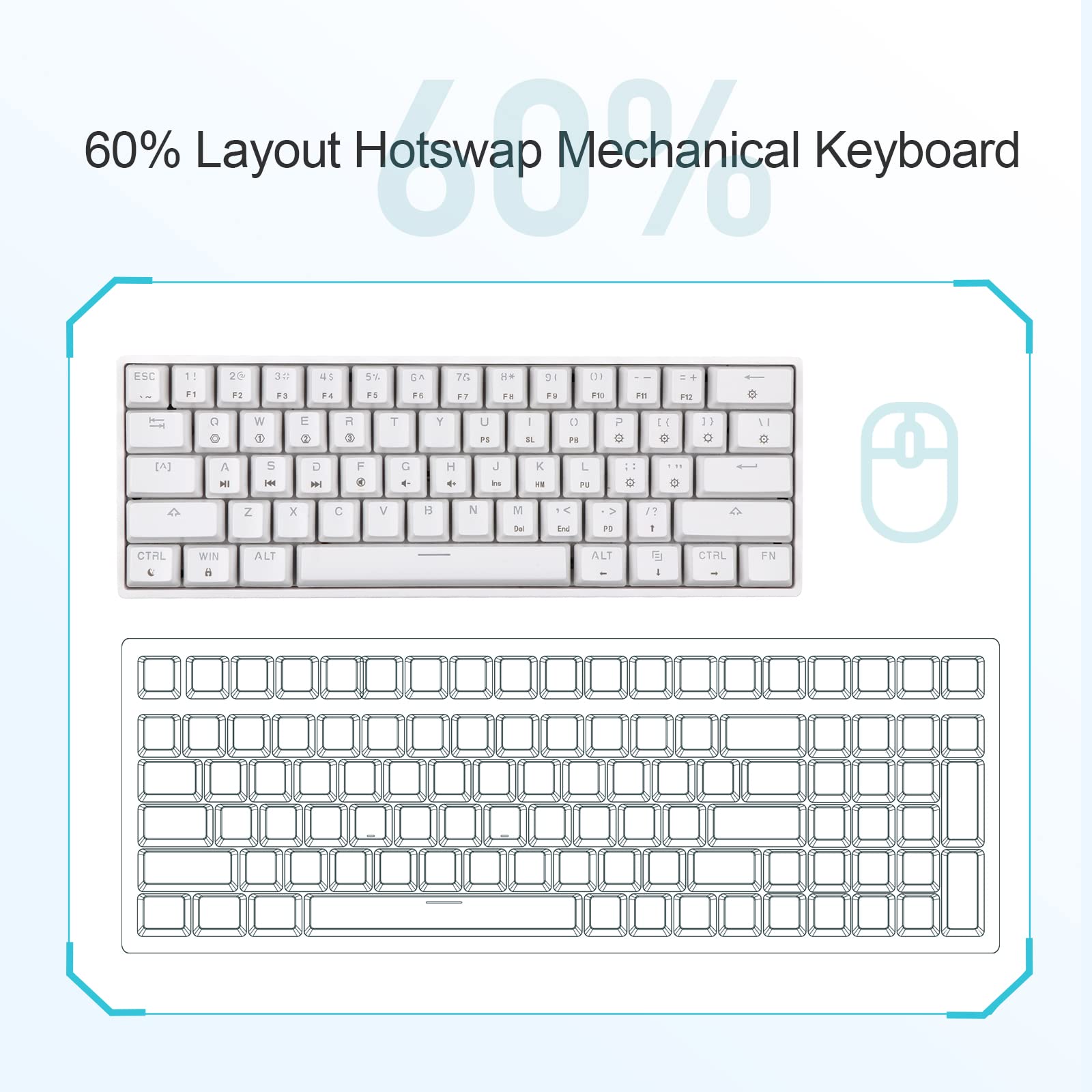 【Wide Compatibility&ABS Doubleshot Keycaps】Compatible with Windows 10/8/7, Win Vista, Windows XP and Mac OS , the SK61 comes with a 60 inches USB Type C to Type-A cable. Suitable for any purpose, home or office. The SK61 adopts double shot ABS keycaps. You can change them as you wish thanks to the keypuller included to the package.