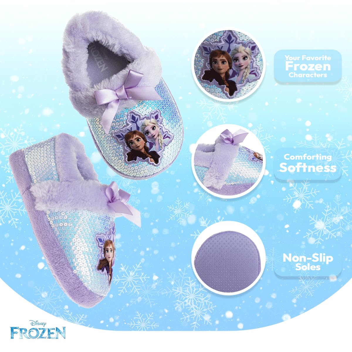 VERSATILE: Six styles of girls house shoes perfect for any fan of Frozen. Order these toddler house slippers now & watch as all eyes turn to your queen in baby slippers. Don't hesitate to buy these Disney Frozen Shoes Girls Frozen shoes for toddler girls!
