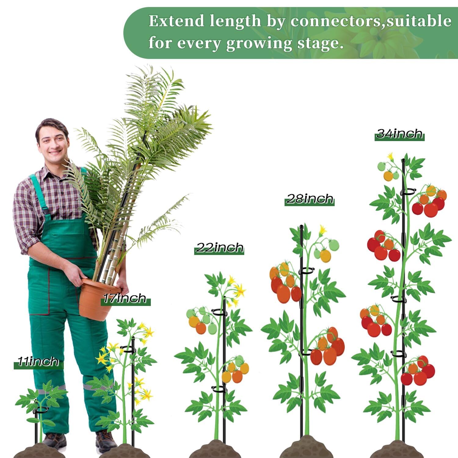 💐[ADJUSTABLE LENGTH &UNIQUE MOVABLE RING BUCKLE DESIGN]--The orchid stakes can be extended length by connectors according to your needs.We provide two size of connectors which are sturdy and can tightly join sticks together,suitable for various size of plants,providing the best growing conditions for plants and help them thrive.