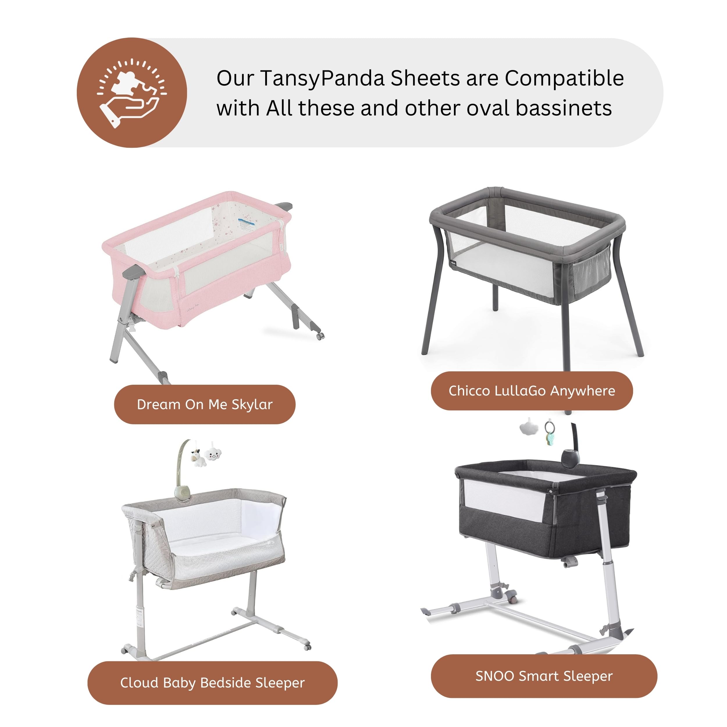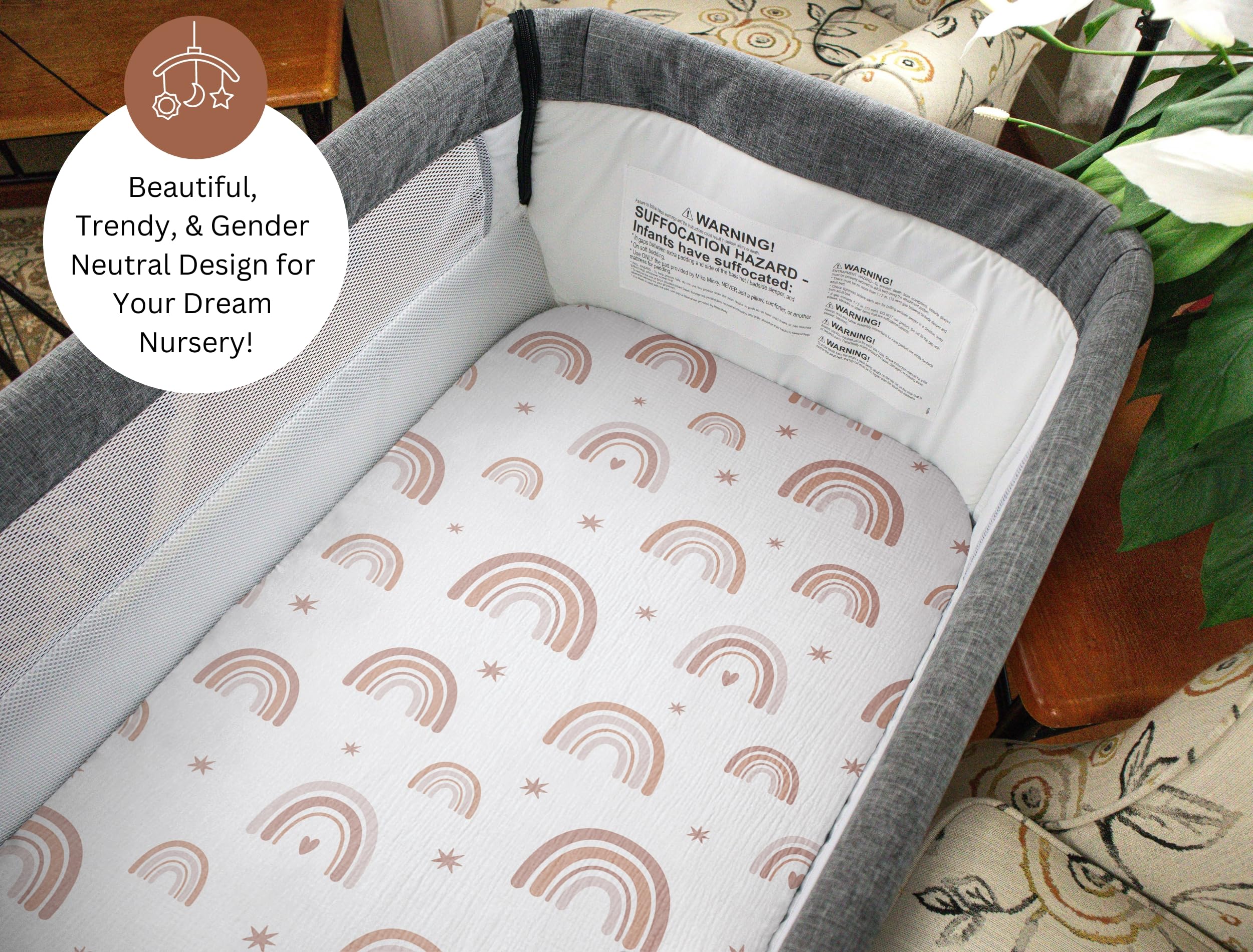 Keep Your Baby Warm, Cozy & Comfy with Tansy Panda Baby Bassinet Sheets! You want your baby to sleep soundly through the night without any interruptions and we want to help make it happen. At Tansy Panda, we use breathable and soft muslin cotton fabric to bring you a fitted bassinet sheet that both baby and parents will love. Tansy Panda portable bassinet fitted sheets keep your baby warm and dry while they sleep and stay firmly in place no matter how much your little one wiggles. Each pack comes with 3 organic bassinet sheets that are easy to clean and maintain. Just the right fit with the adorable rainbow pattern for bassinet bedside sleepers. We use adorable, modern designs that look equally cute on all bassinets for newborn babies including travel bassinet. Unlike the rest, we donβt use any dyes to make sure our newborn bassinet sheets are safe to use and gentle on your babyβs sensitive skin. Our sheets measure in at 21 x 32 inch making these ideal for use with rectangle, bedside, hourglass, and oval mattresses and compatible with Chicco LullaGo, Dream On Me, Cloud Baby, Yacul bassinet mattresses. The 360-Degree elastic coupled with the smooth fabric makes sure no lumps get in the way of your babyβs comfort. More Features Youβll Love: - The bassinet cover are machine washable and fade resistant - They donβt lose their softness even after multiple washes - Each pack has 3 sheets so you always have a fresh sheet ready to use - Our universal size with 360-degree elastic band ensures the perfect fit - The sheets are soft and breathable so you can use them around the year - Makes a thoughtful baby registry gift and baby shower gift Maintain Your Babyβs Comfort Around the Clock So They Can Sleep & Dream with Tansy Panda Bassinet Sheet Set!