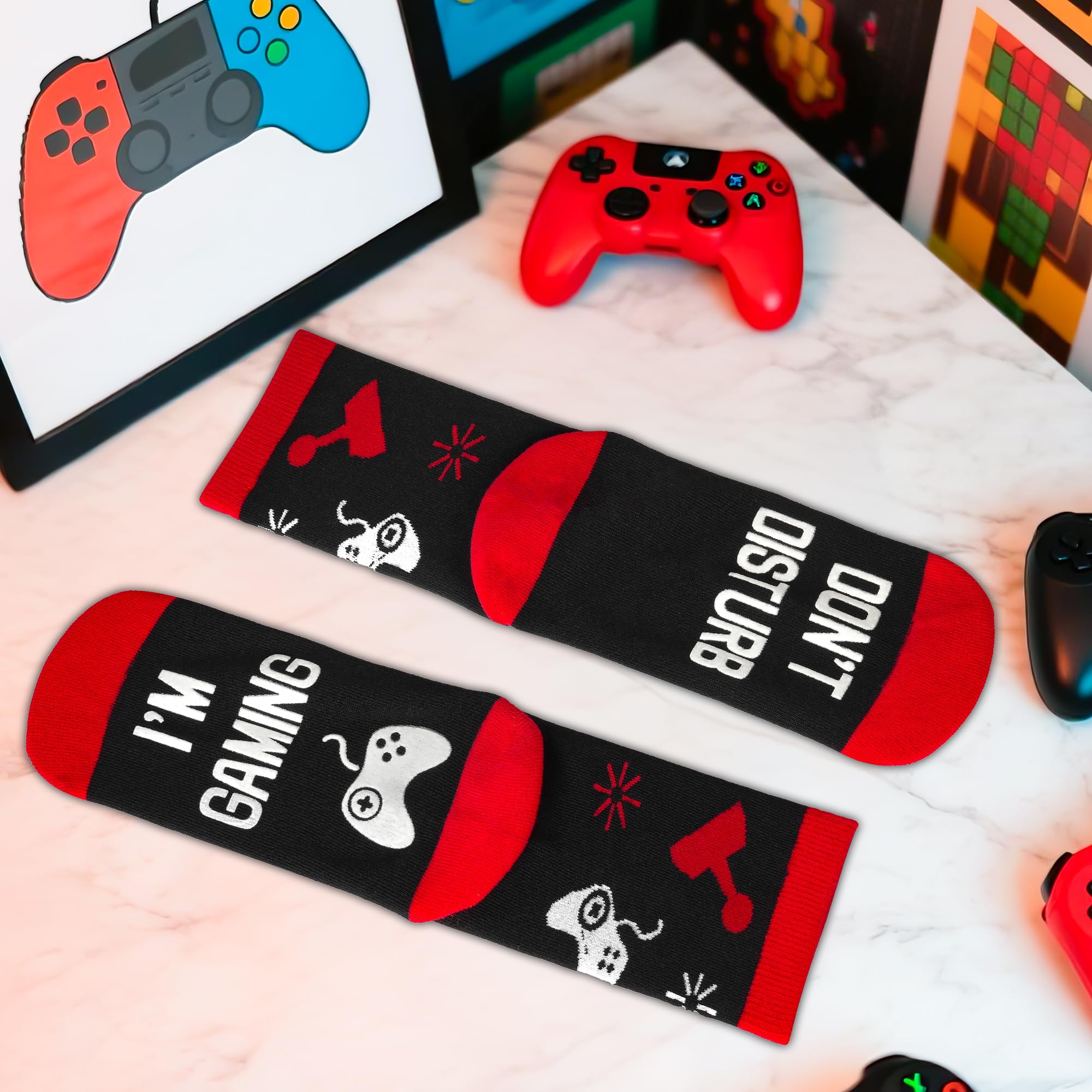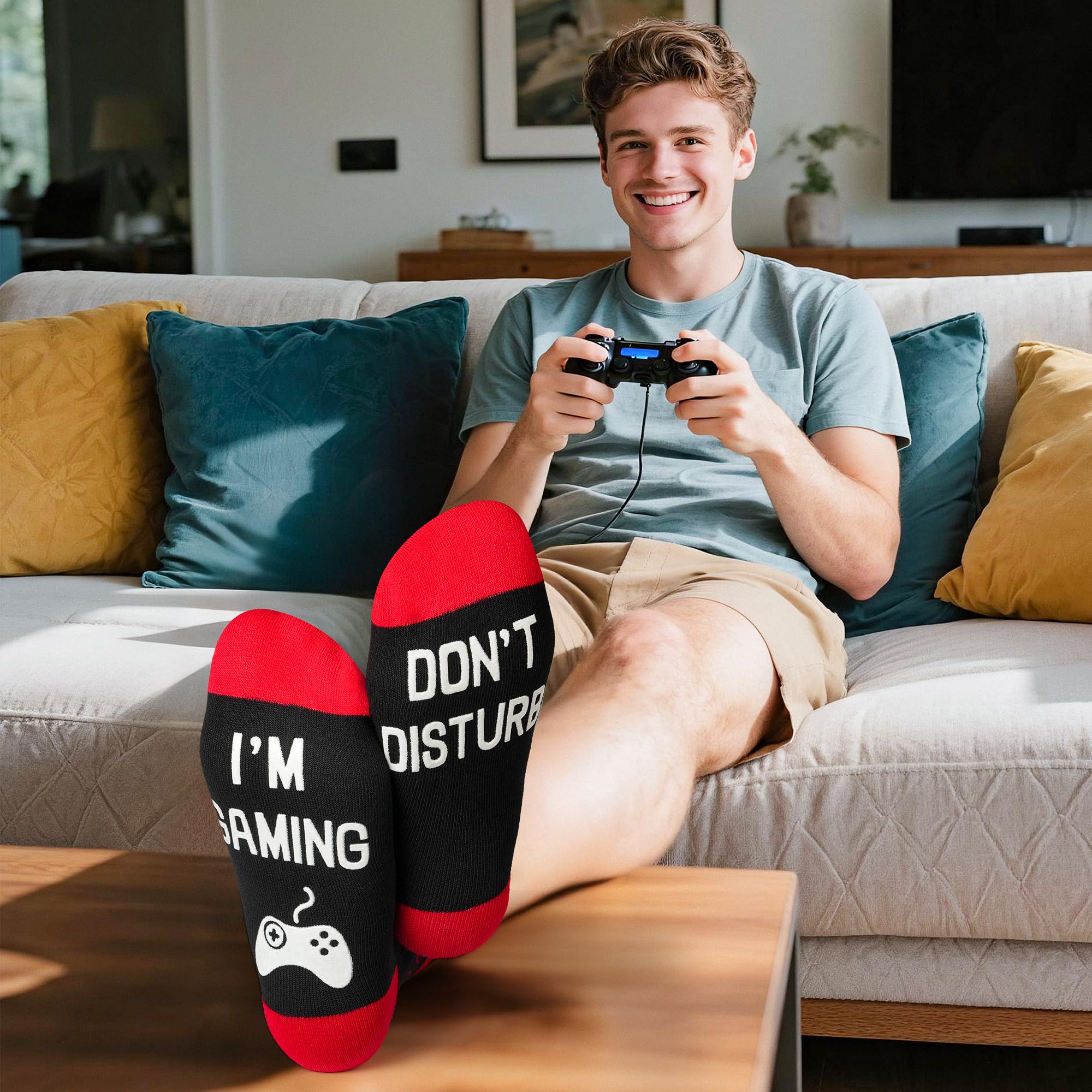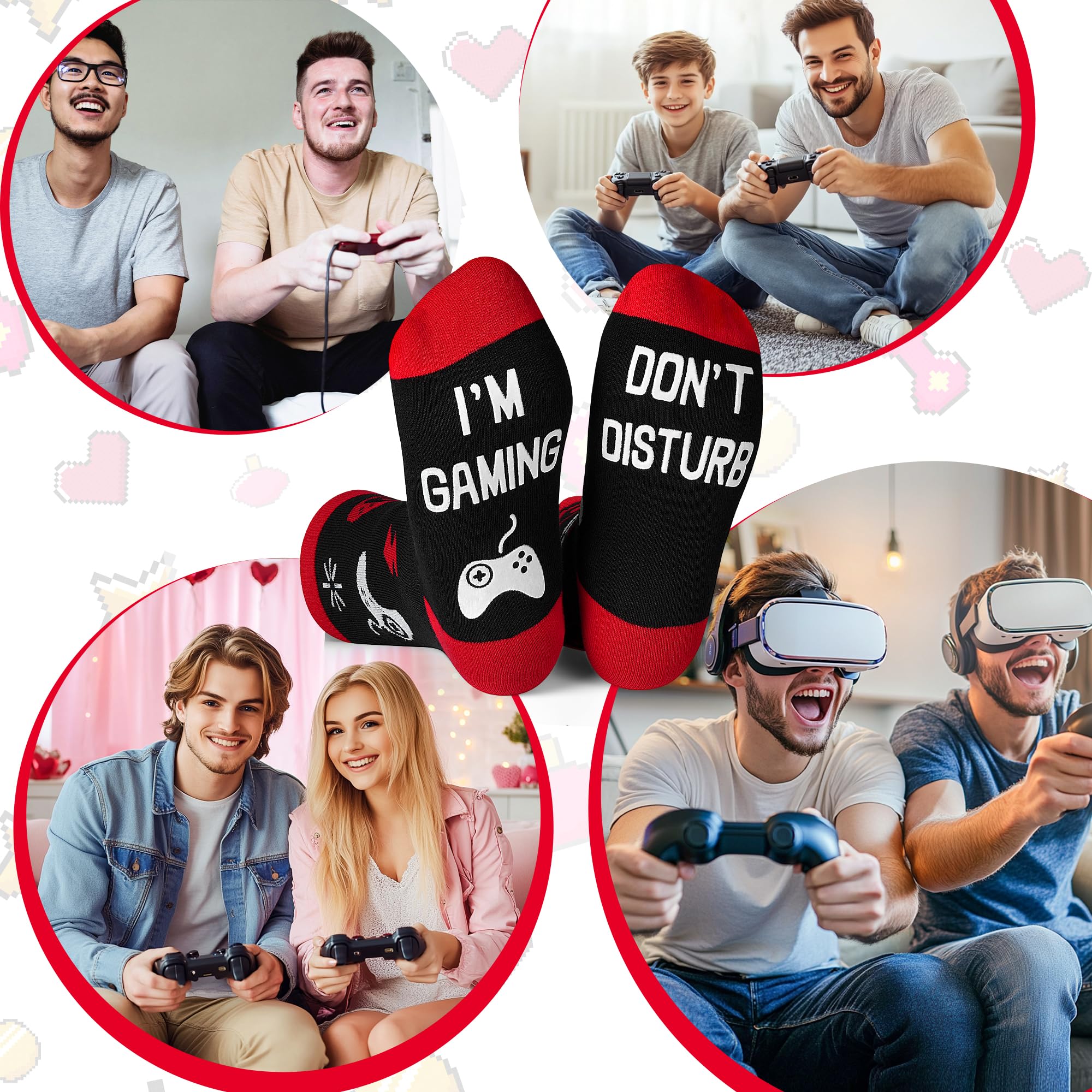 Perfect Mens Valentines Day Gifts:Teen valentines gifts,birthday gifts for teens,valentines day gifts for boys,boyfriend birthday gifts.Funny Do not disturb im gaming socks fit for unisex US Sizes 6 To 12.Each pair socks comes with an exquisite gift box packaging.It is a good choice for valentine gifts for boys,gifts for gamers men.Great valentines day socks for him,teen boys,fathers,dad,man,uncle,brother,grandkids and sons
