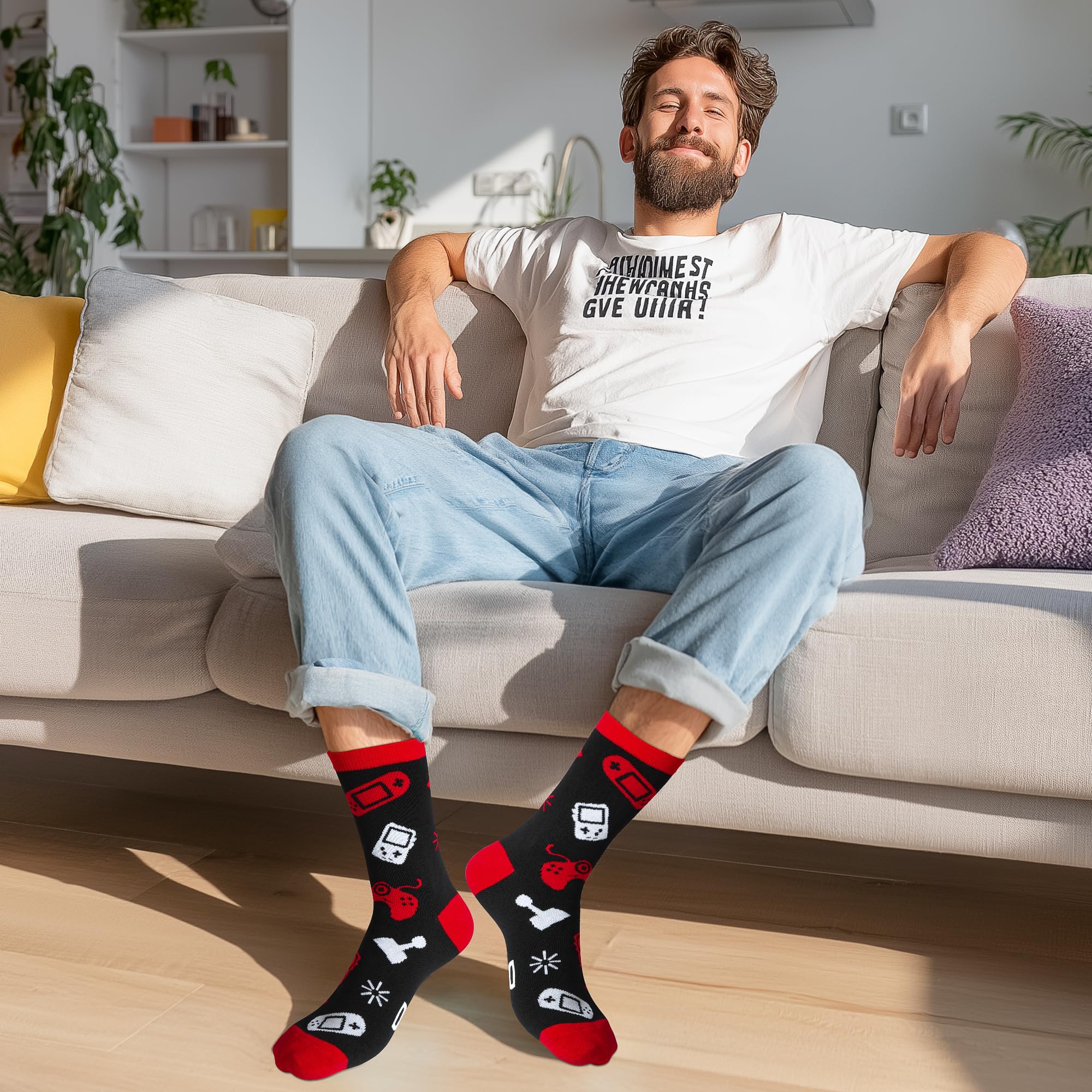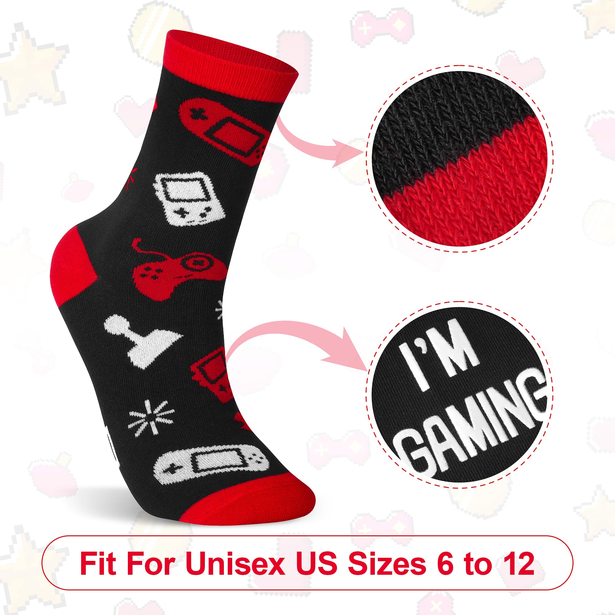 Gaming Socks Gifts for Teen Boys:Valentines day gifts for teens,valentines day gifts for kids,teen boy gifts 13-15,mens socks gifts,gifts for boys.There are cute game element patterns on the front of the gaming socks,and these gaming socks is made of 92% Cotton-soft,5% Polyester,3% Spandex,stretch,breathable,very comfortable to wear.Keep feet warm and dry without feet hot and sweaty.Suitable for wearing all year.Boy valentines gifts,valentine's gifts for teenagers
