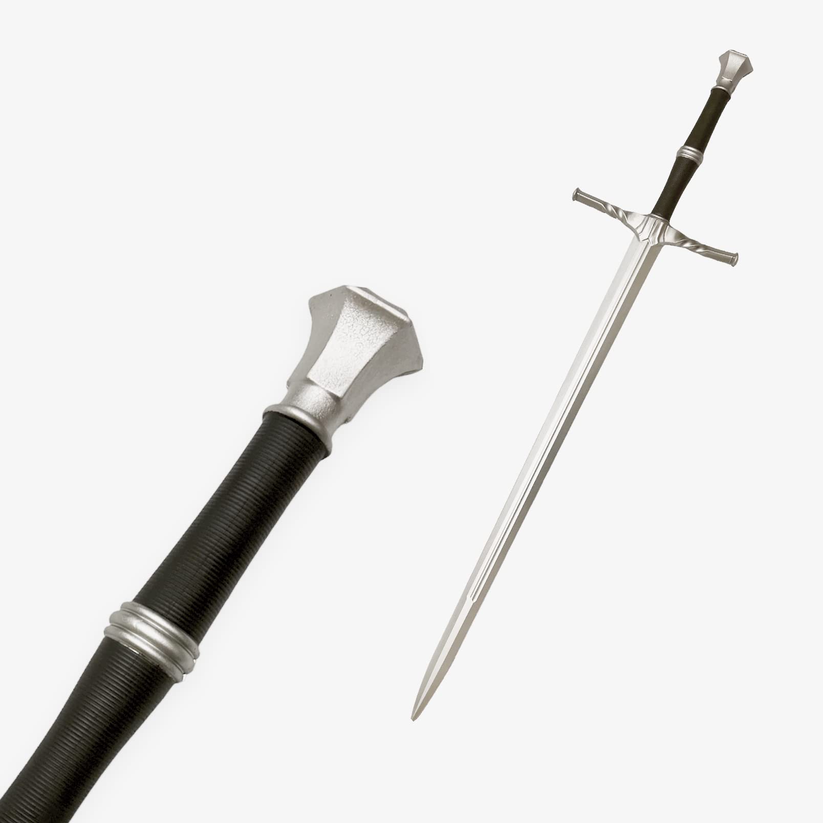 Overall Length: 41” Blade Length: 29” Hilt Length: 10.5” Weight: 1 lb Silver-colored and made of high-density foam with a plastic core, and looks sharp enough for monster slaying Also Silver-colored, and decorated with show-authentic pieces Highly detailed and safe for conventions, it perfectly completes your cosplay All of our swords are made of the finest materials, and are packaged securely in our own warehouse
