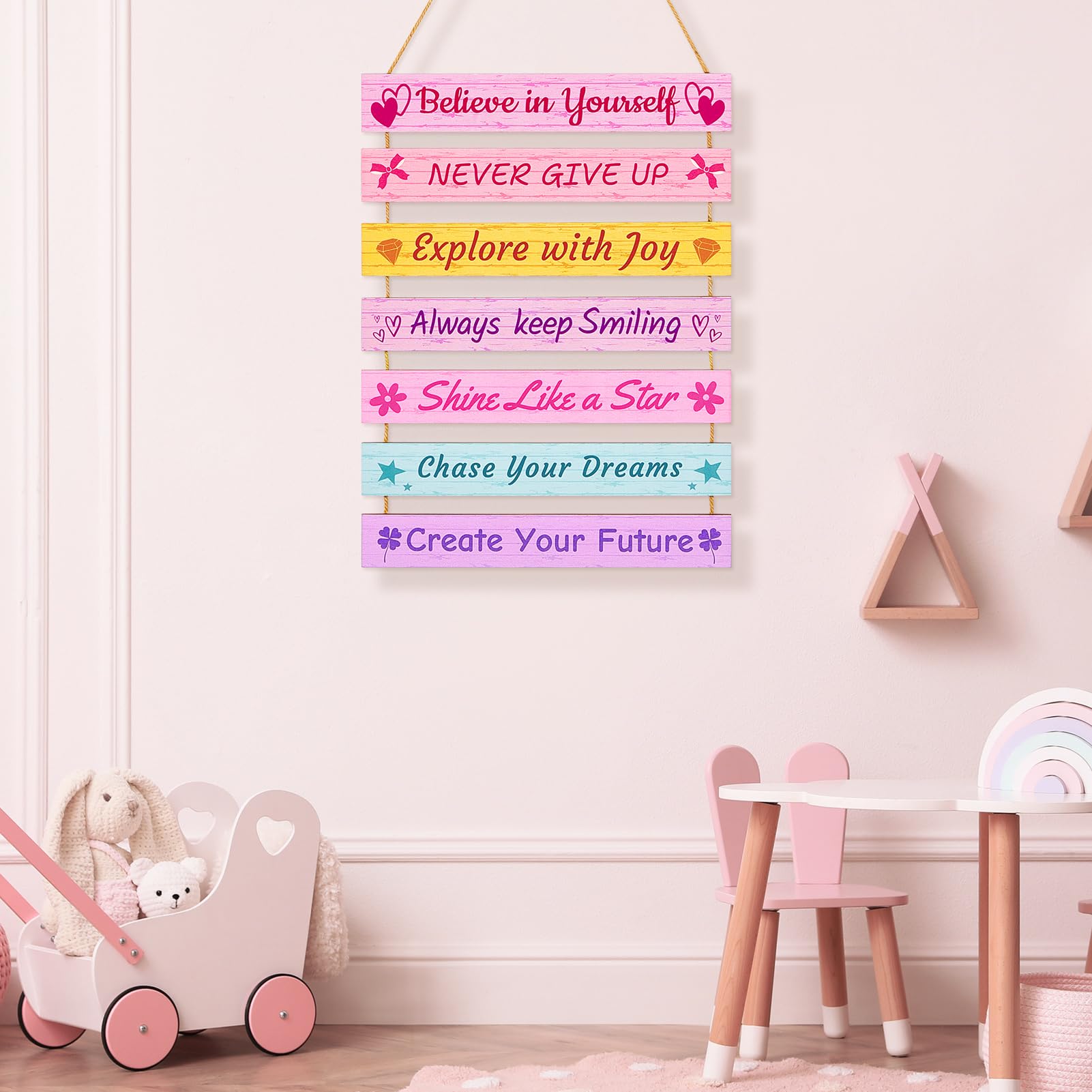 Rich in colors: This girl room decor is printed with spray paint; The pattern is brightly colored, clear and clean; Motivational copywriting can make kids positive and energetic; This is a great wall decor for bedroom that can increase your child's self-confidence