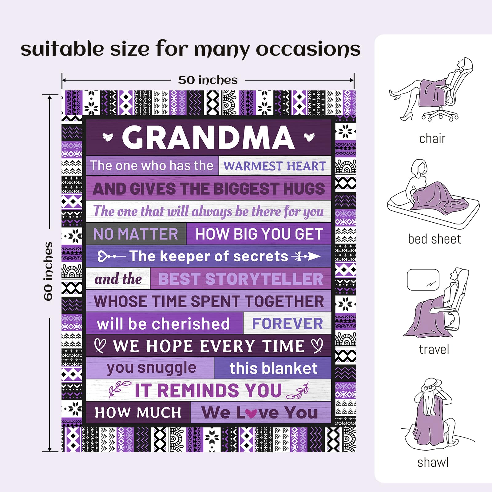 [Gifts for Grandma on Various Occasions] - Show your grandma how much you appreciate her with this heartfelt gift, perfect for any holiday or special occasion. From Mother's Day to Thanksgiving, she'll love snuggling up in this cozy and inviting blanket.