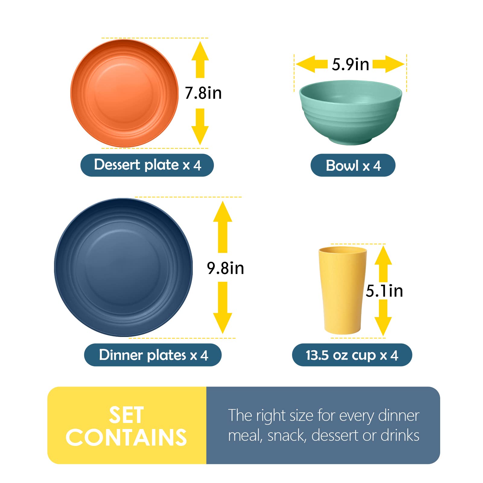 PACKAGE INCLUDE: This wheat straw dinnerware sets include 16 pieces in total. Easy to match your existing flatware.