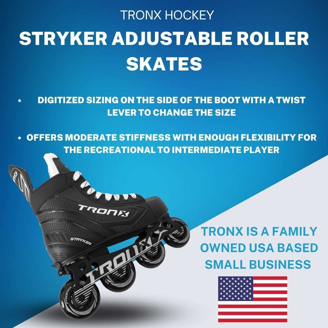 One of the top features found in the TronX Adjustable is the injected comp weave quarter package. This technology offers moderate stiffness with enough flexibility for the recreational to intermediate player. With this flexibility, you can work on your stride while also being comfortable in your skate.