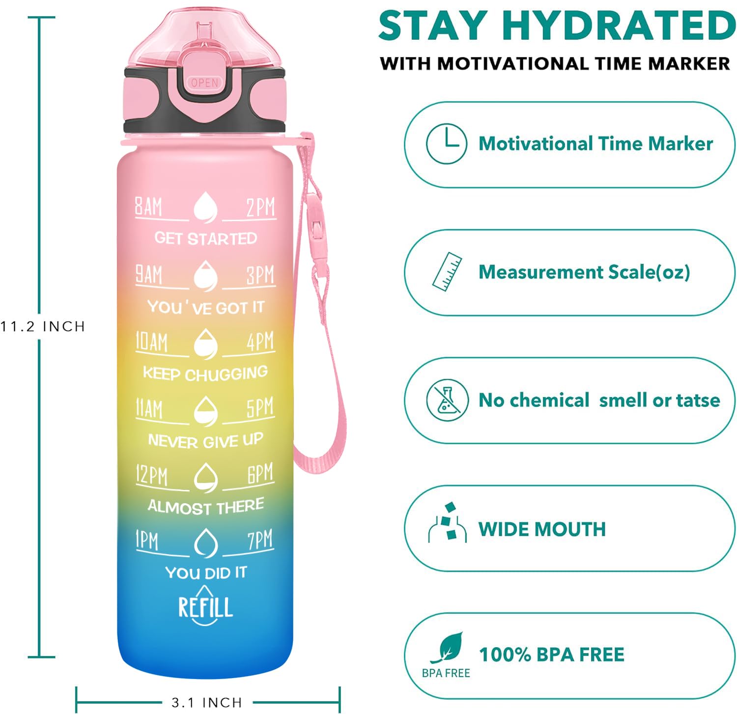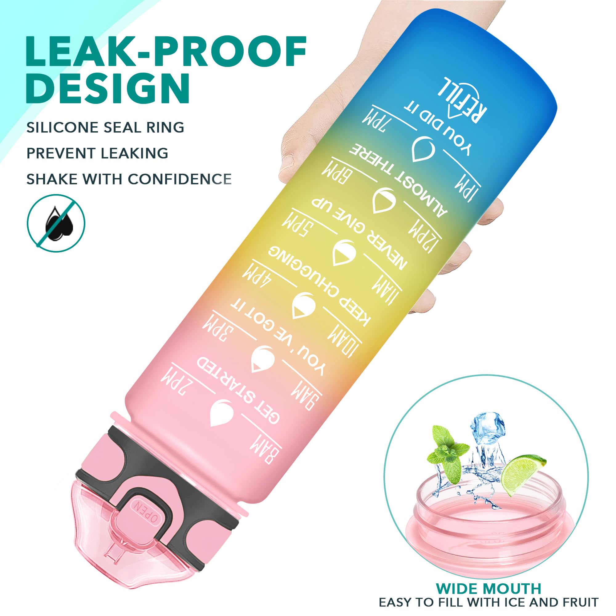 [Inspirational quotation and time mark] 32 ounces of water bottle, with unique inspiration and time marks, remind you to keep moisture. Capacity marks can help you track daily drinking water. The silicone straw allows you to drink water effortlessly. Athletes such as athletes and white -collar workers.