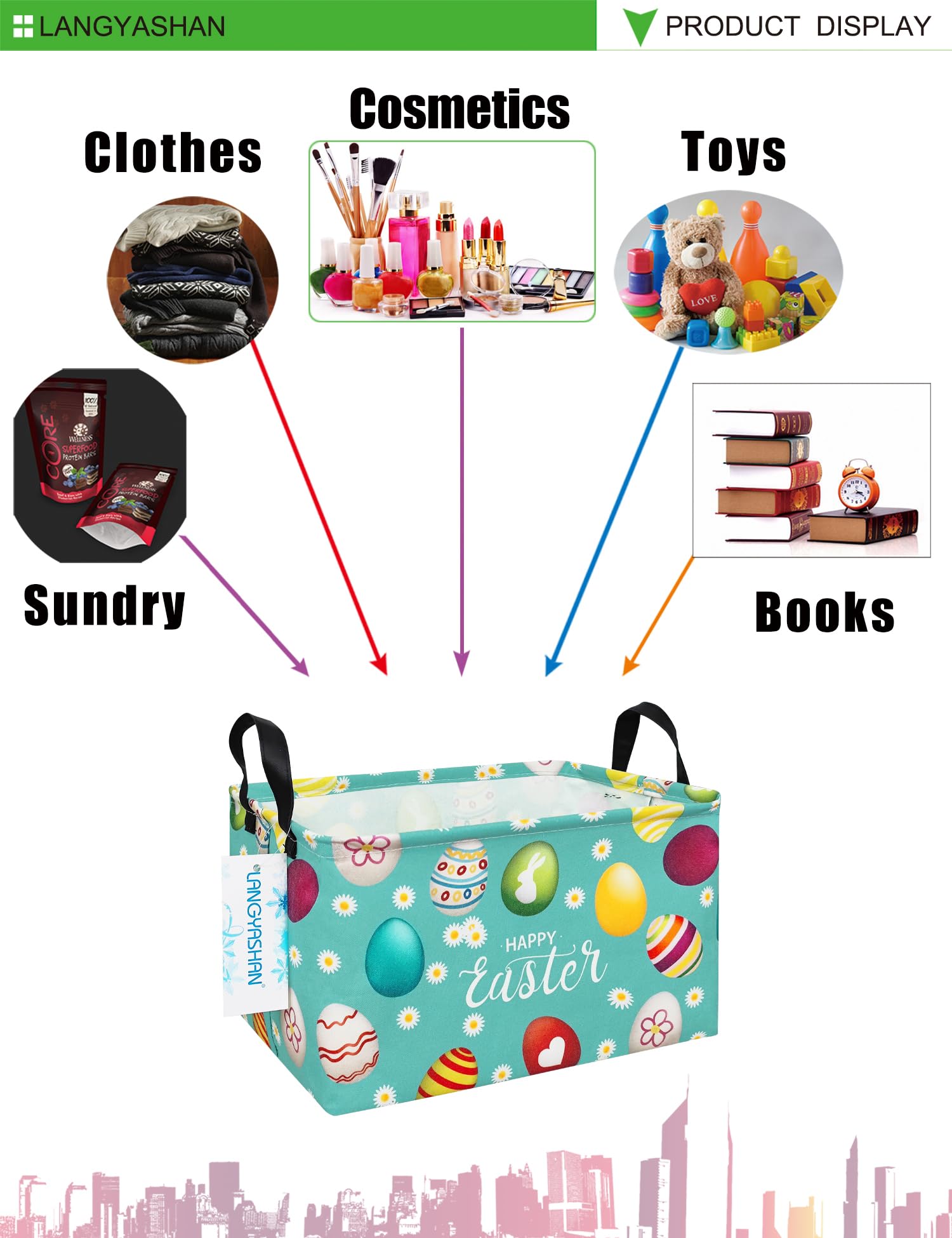 Material: Polyester canvas linen and PE environmental protection waterproof coating. This storage basket easy to stand and foldable, Waterproof PE coating inner, which to achieve the effect of moisture resistant.