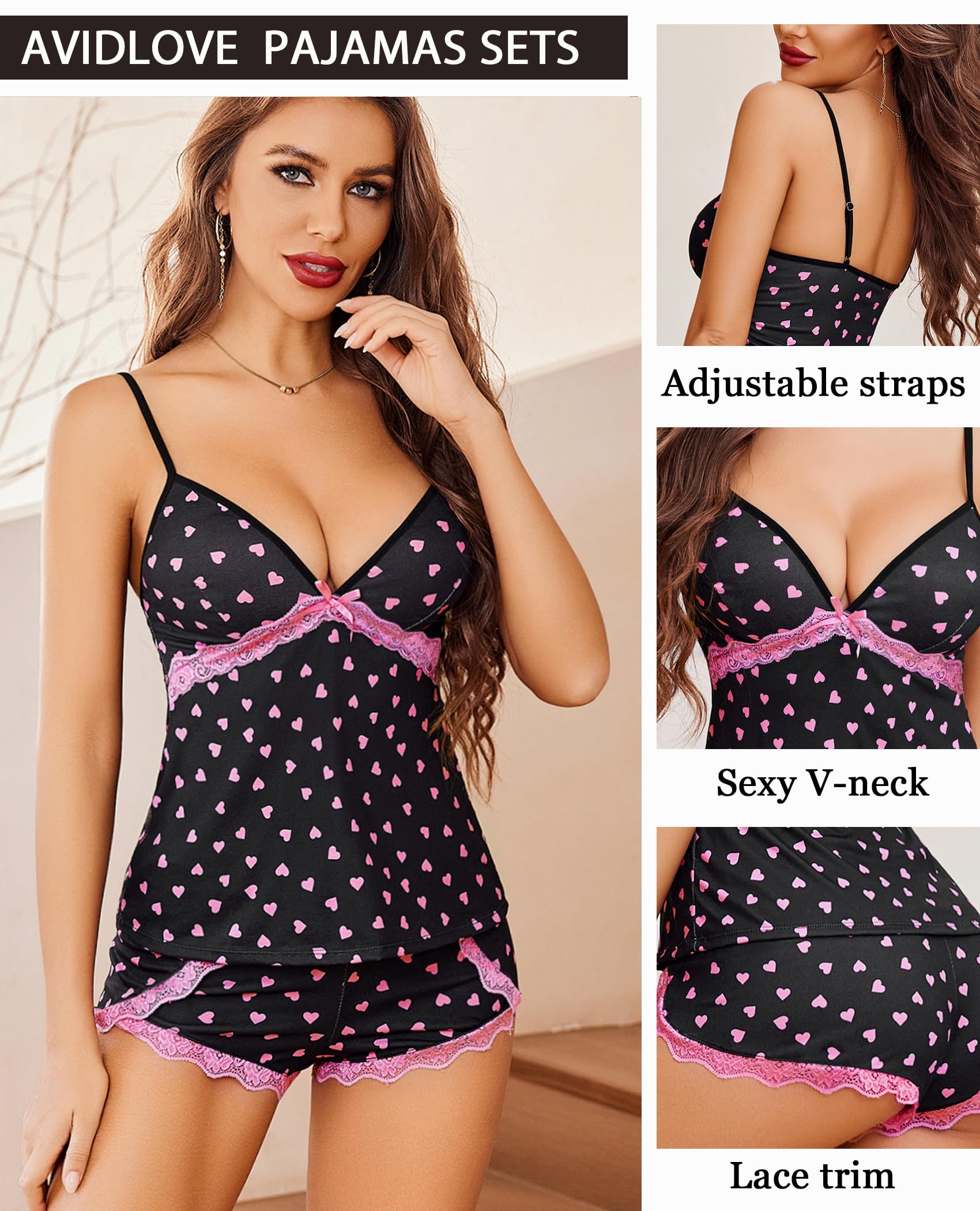 【Cami Pajamas Set】: Sexy pajamas for women with shorts is designed with v neck and with bow decoration ,adjustable spaghetti strap for easy wearing and adjustment to the comfort position you want, make you comfort, sexy in the night.