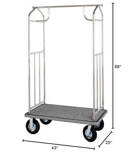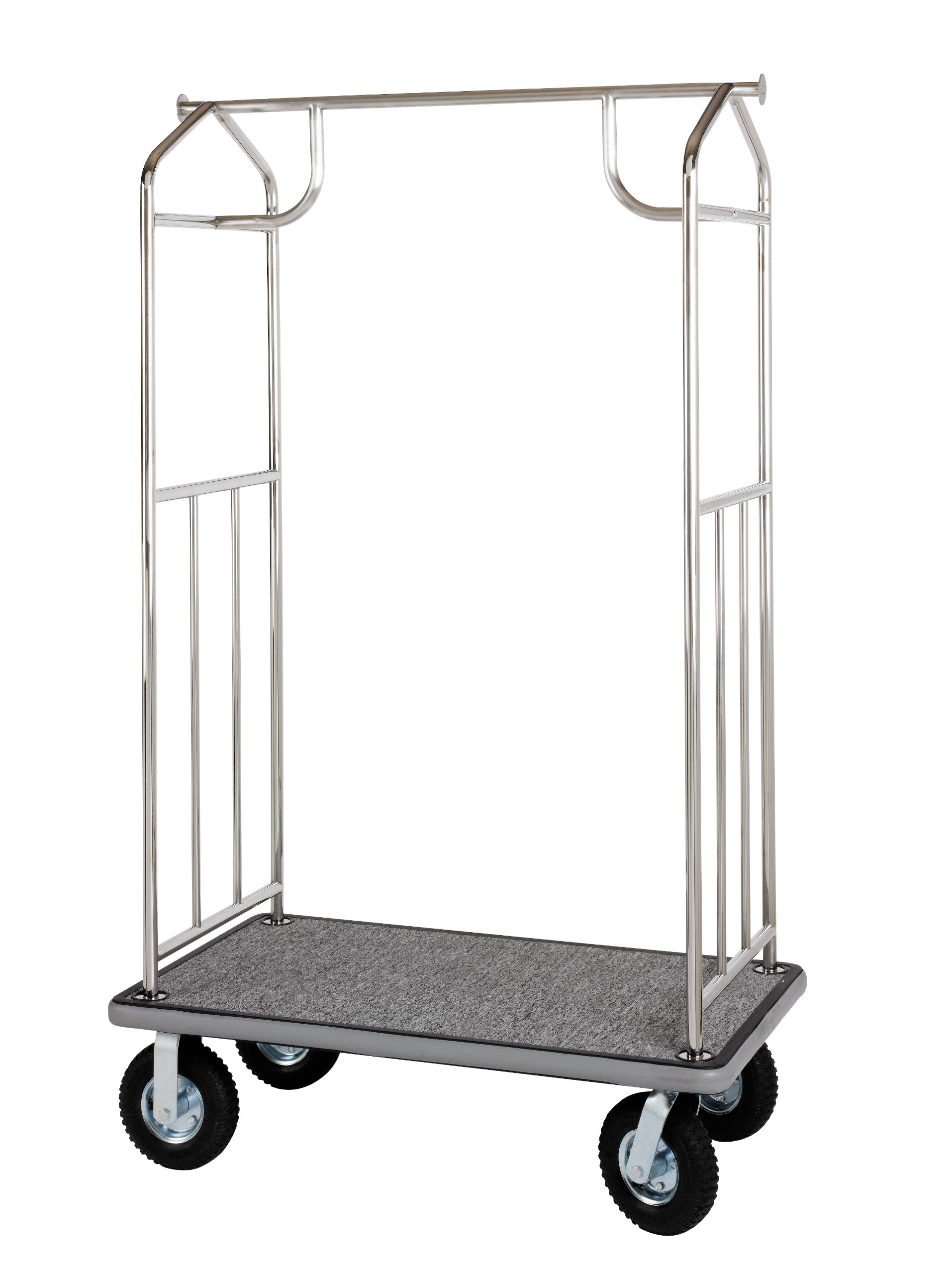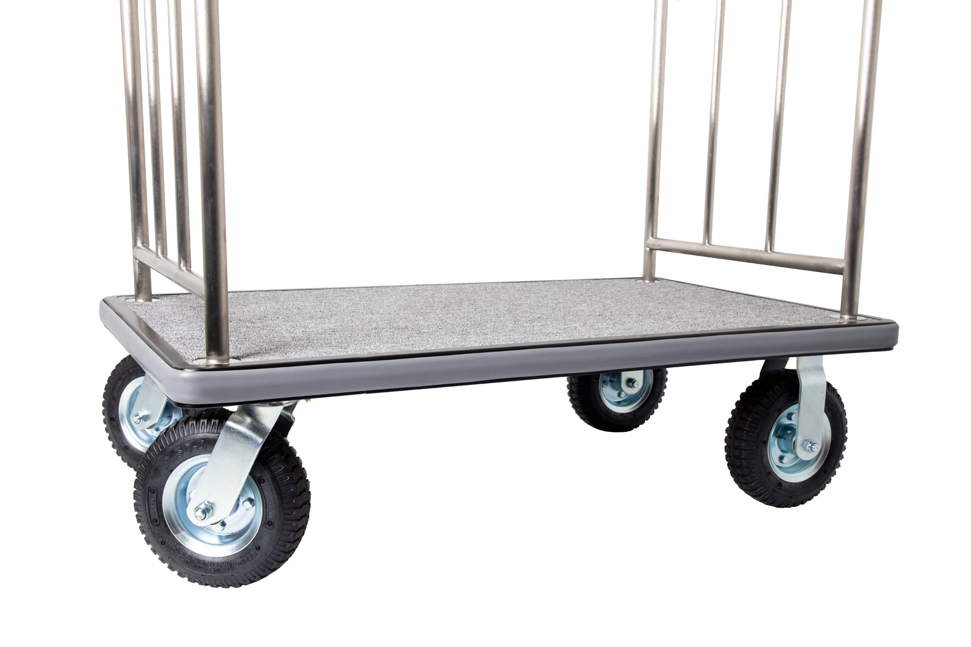 SMOOTH TRANSPORT WITH 6β AIR-FILLED TIRES: Designed for easy maneuverability, this bellman cart is equipped with 6β pneumatic wheels that provide superior shock absorption, gliding effortlessly over carpet, tile, and concrete.
