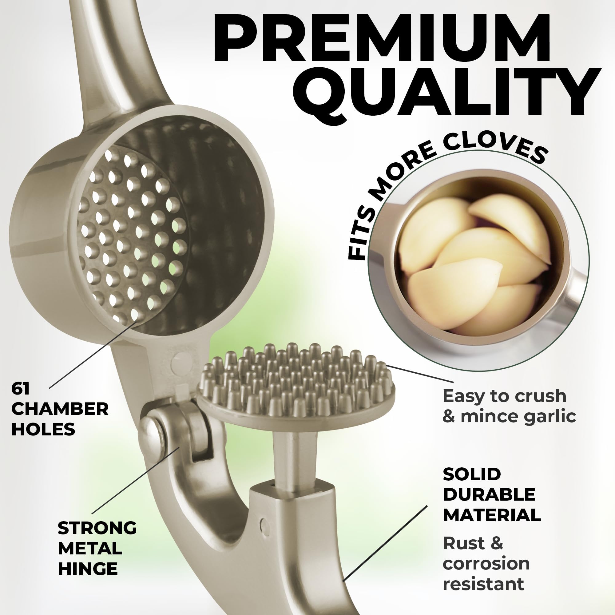 SIMPLE TO USE & BUILT TO LAST: Our premium quality garlic press is constructed from food-grade, rust-resistant materials meant to be among your favorite kitchen gadgets for years to come. This garlic and ginger mincer is designed with built-in studs to extract more paste within seconds. It is great for both professional and home kitchens.