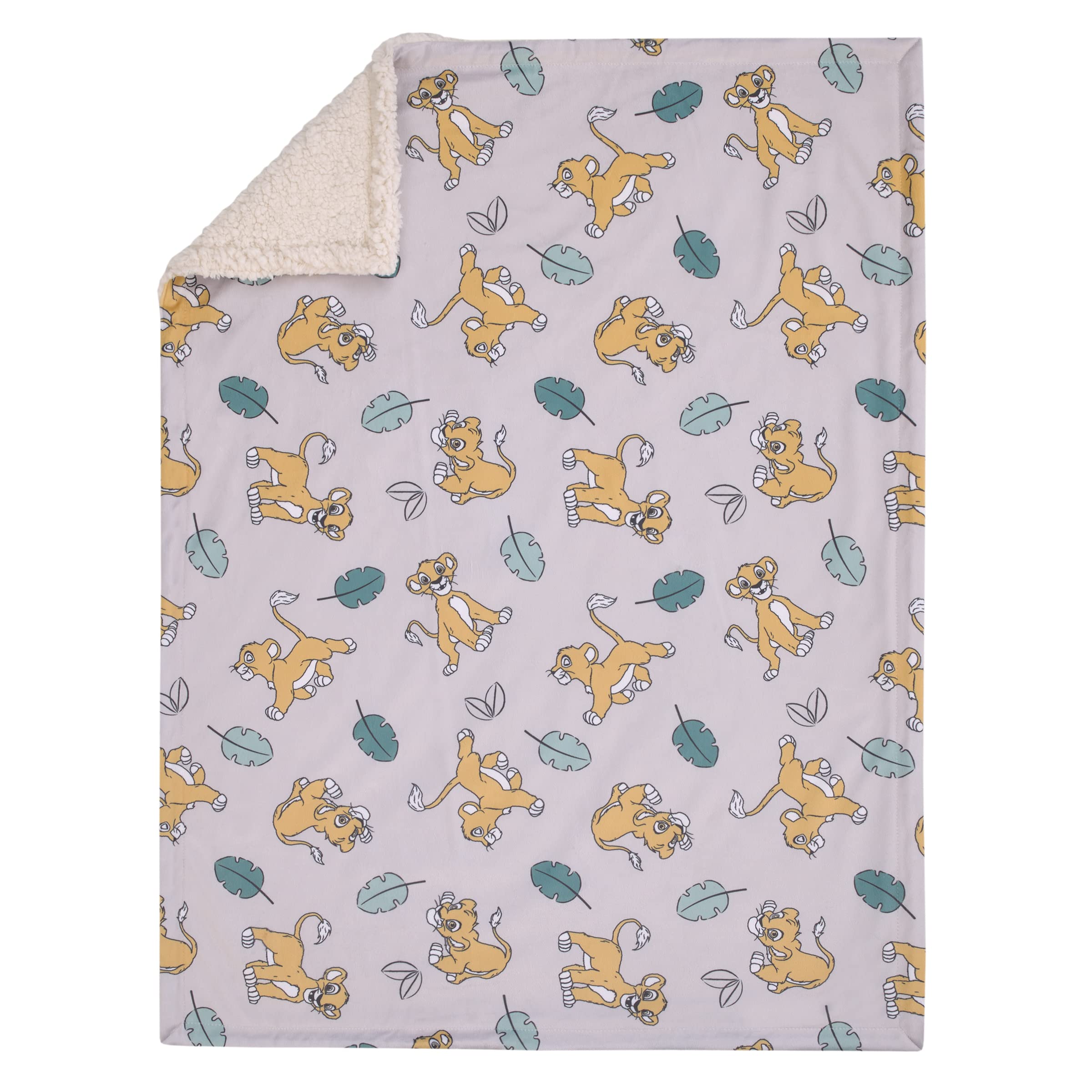 This soft baby blanket is detailed with a cute allover Simba pattern