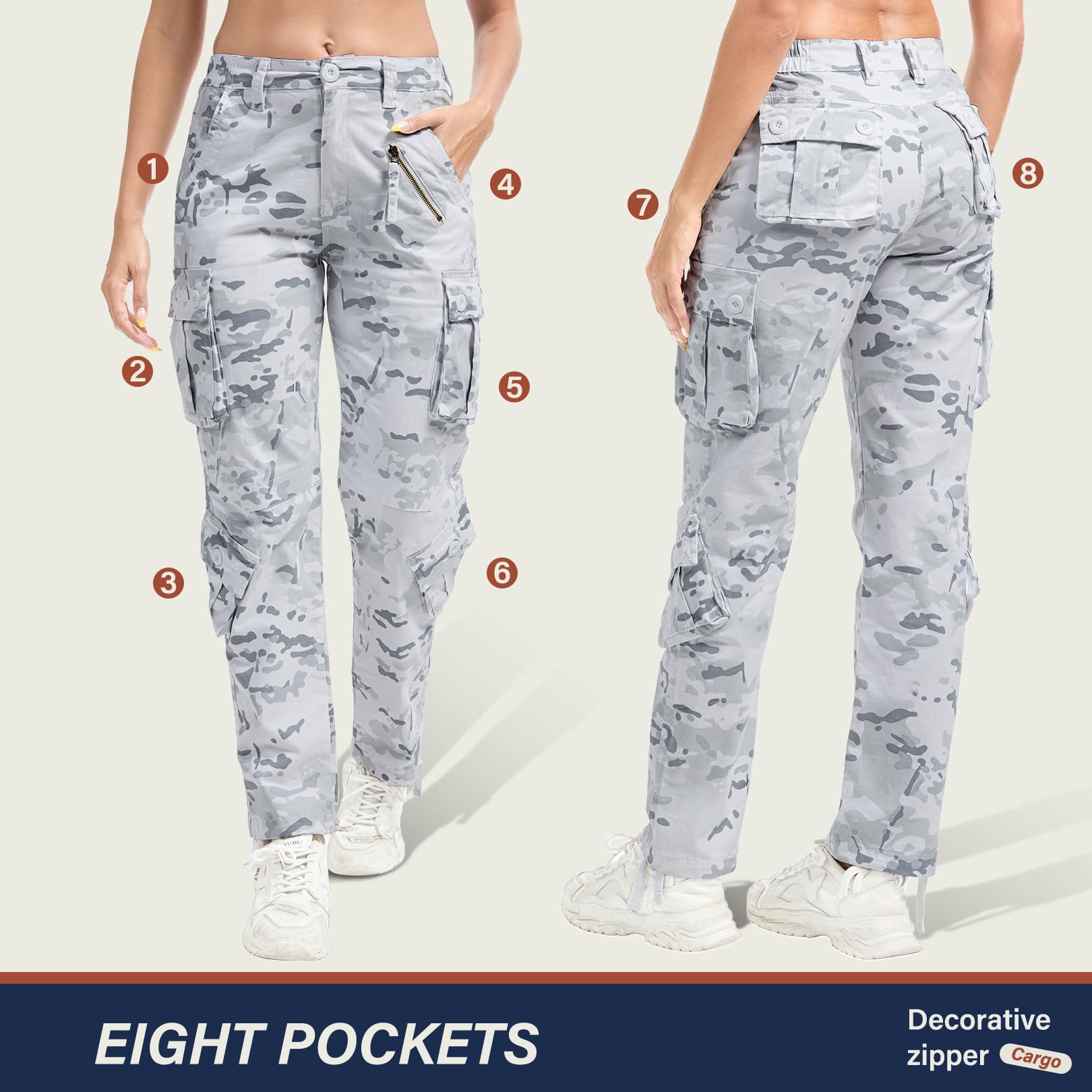 Cargo Pants for Women: Alfiudad tactical performance cargo pants features 8 pockets which is stylish and functional to help free your hands during activities/The left front zipper pocket is for decorative use. Hand/Machine washing in cold water, do not bleach, hang dry is preferred. Belts need to be purchased seperately.