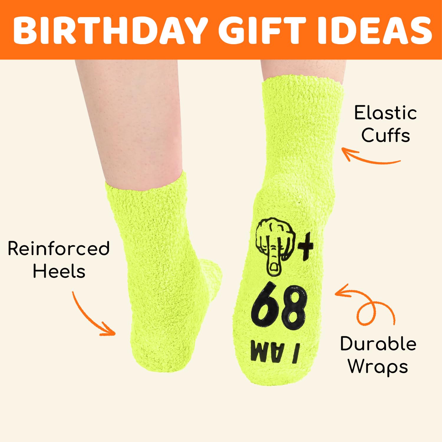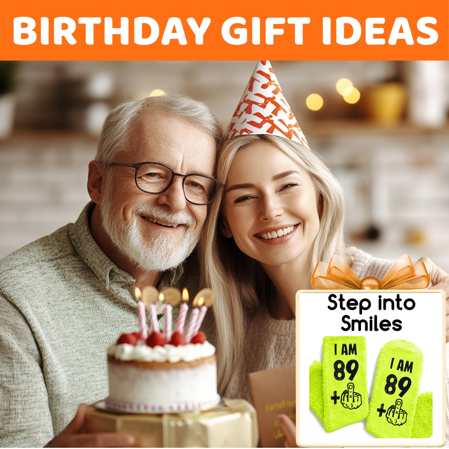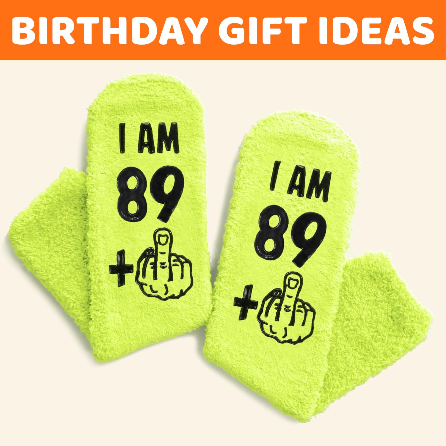 90TH BIRTHDAY GIFT IDEAS: Say it with socks - "I AM 89+1." These are suitable for any holiday gifts, such as Birthday gifts, Christmas gifts, or White Elephant gifts.