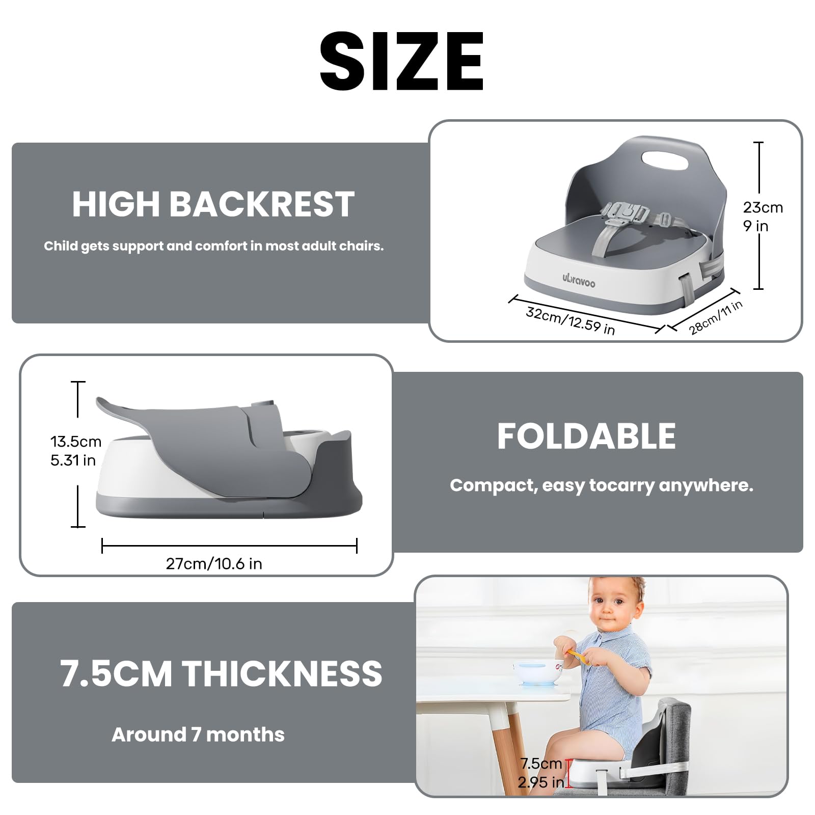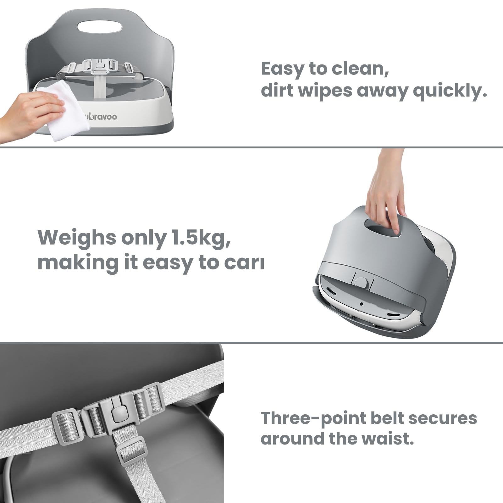 UBRAVOO Baby Booster Seats, Portable High Chairs for Babies and Toddlers, HighChair for Baby from 6 Months to 3 Years, Sitting Up to 15 kg (Grey)
