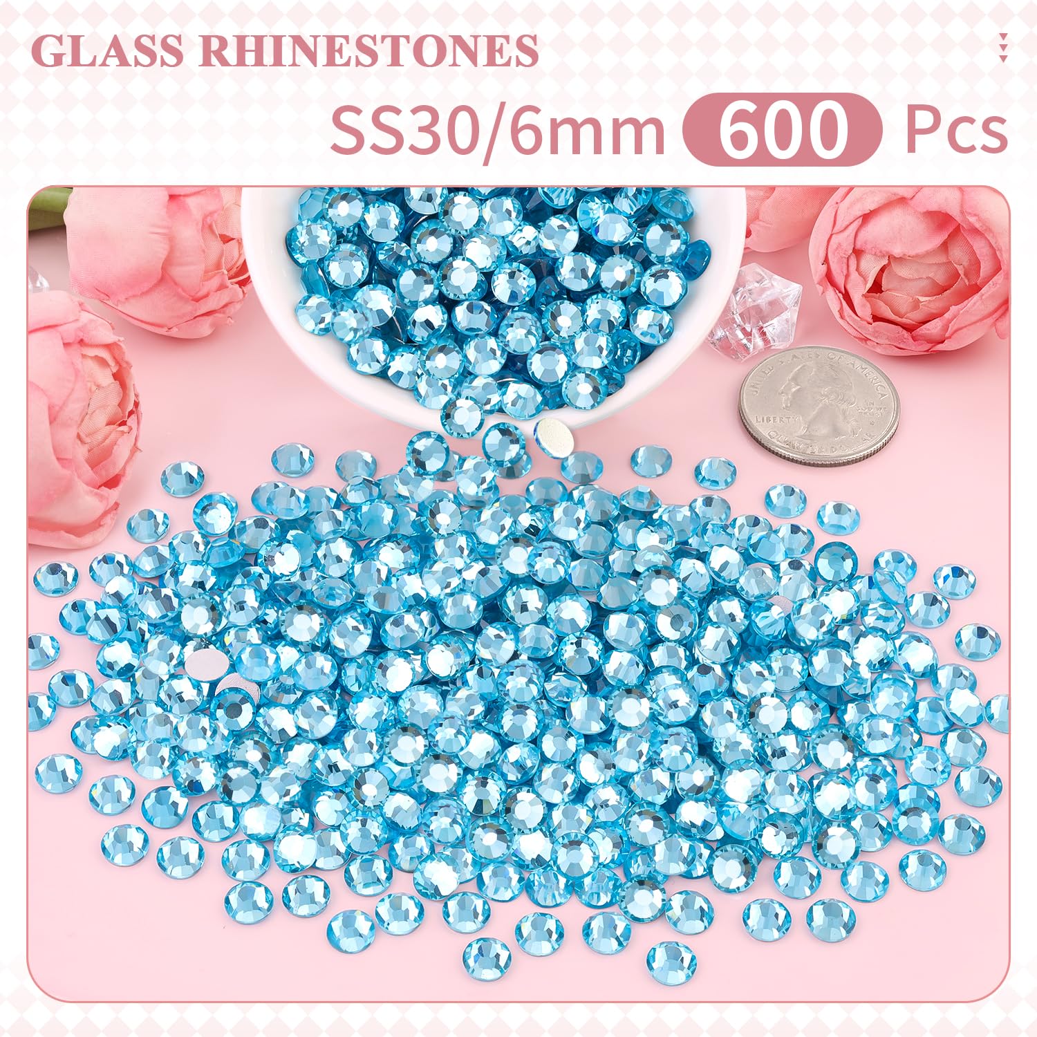 WHAT WILL YOU GET -- The package contains about 600 pcs SS30 (0.24") blingbling glass rhinestones (Aquamarine). The large amount will support you to fulfill a number of your wonderful DIY decoration ideas. Additionally, 1 tweezers and 1 pickup pen are included to easily pick up glittering gems.