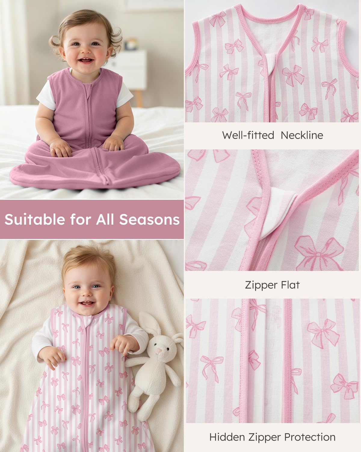 3-Pack Features: The package comes with 3 pack sleep sack for baby, so that baby always has one to wear to bed. The 3 colors are suitable for both baby boys and girls, which is perfect as baby registry.