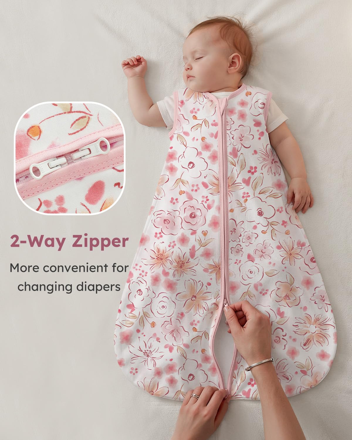 Smooth 2-Way Zipper: Our sleep sack double zipper makes midnight diaper change easily. The interior zipper guard and top zipper cover protect any scratches or discomfort from baby's delicate skins, ensuring the safety of your beloved baby.