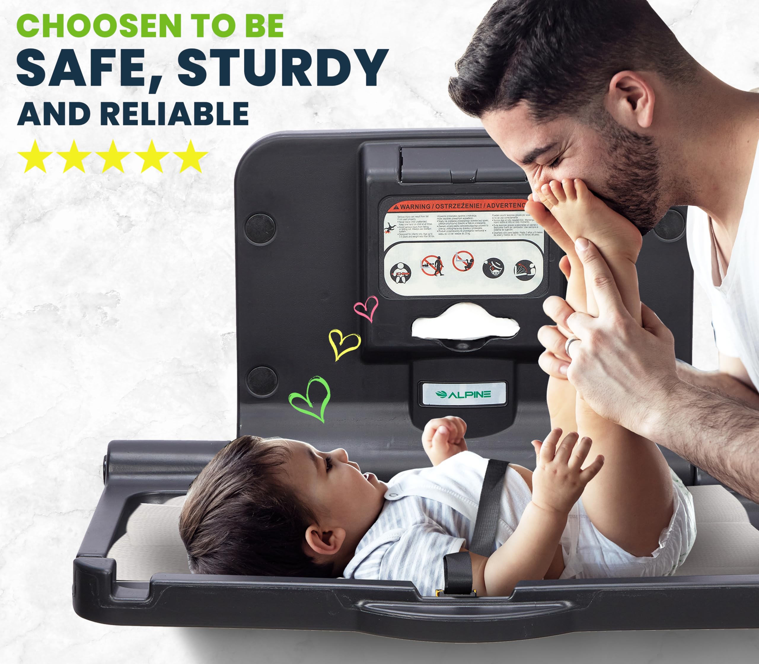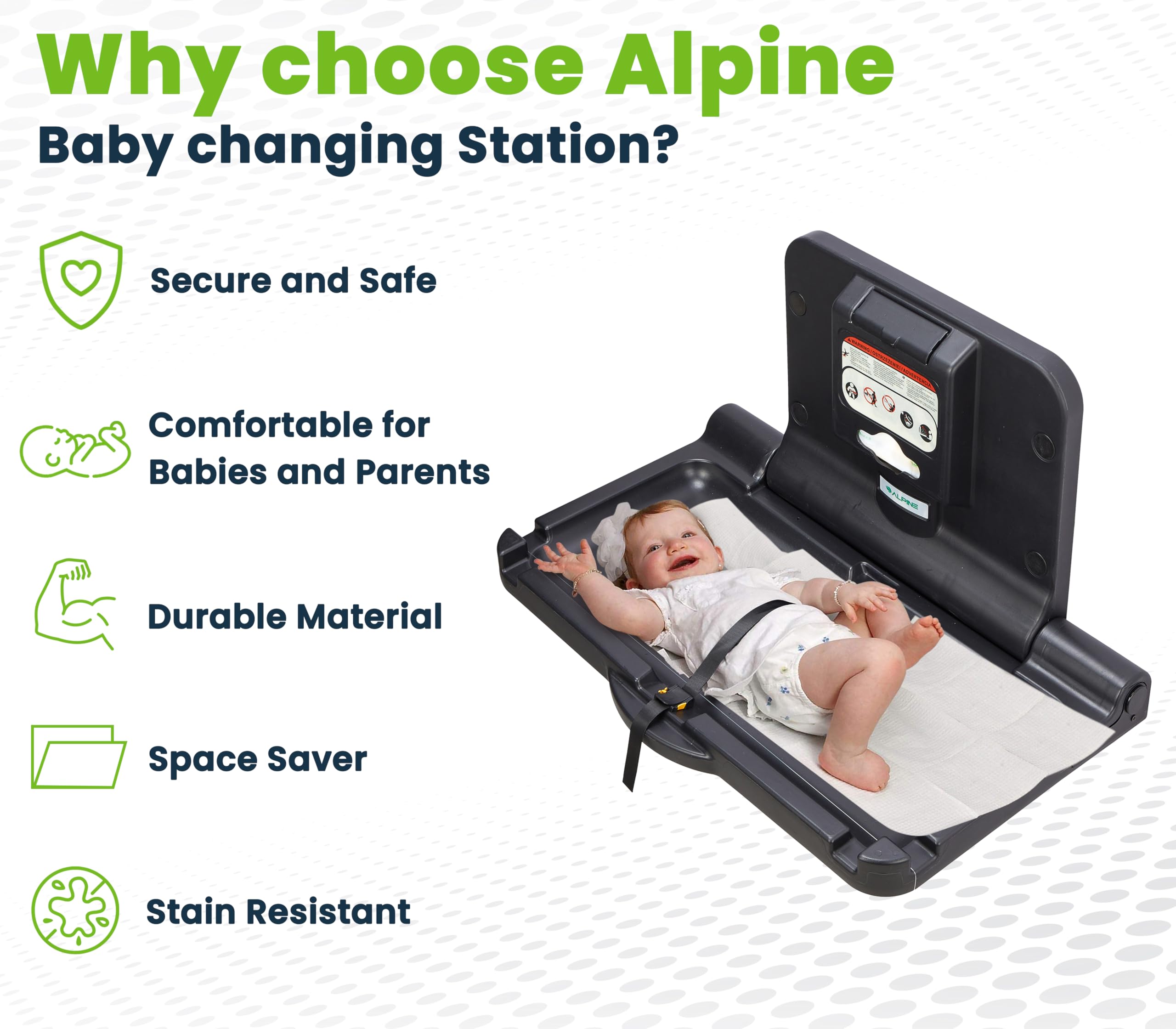 Safety first: Alpine Baby Changing Station is sturdy, secure (Safety straps included), and can support your baby's weight. a cost-effective option that prioritizes safety without sacrificing quality.