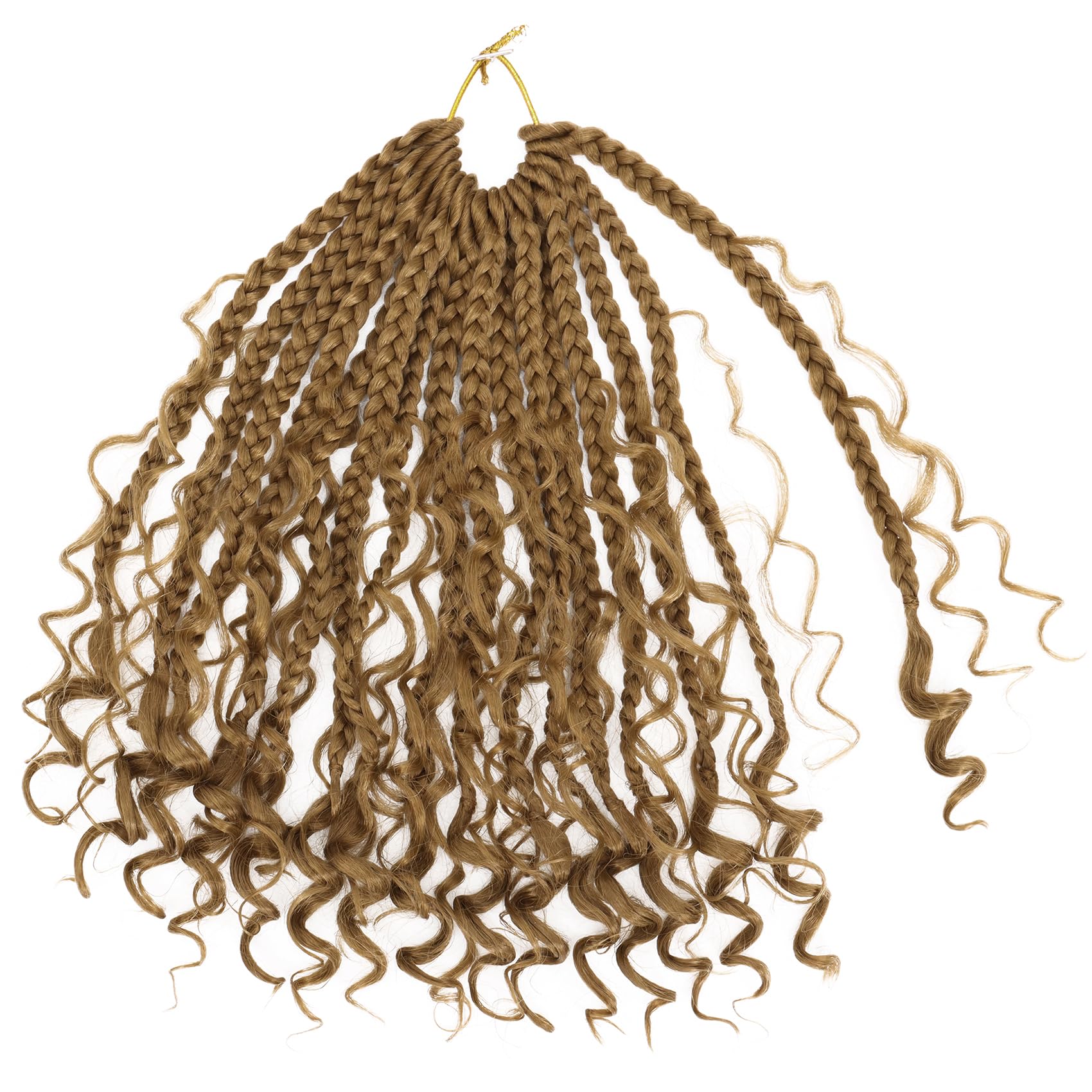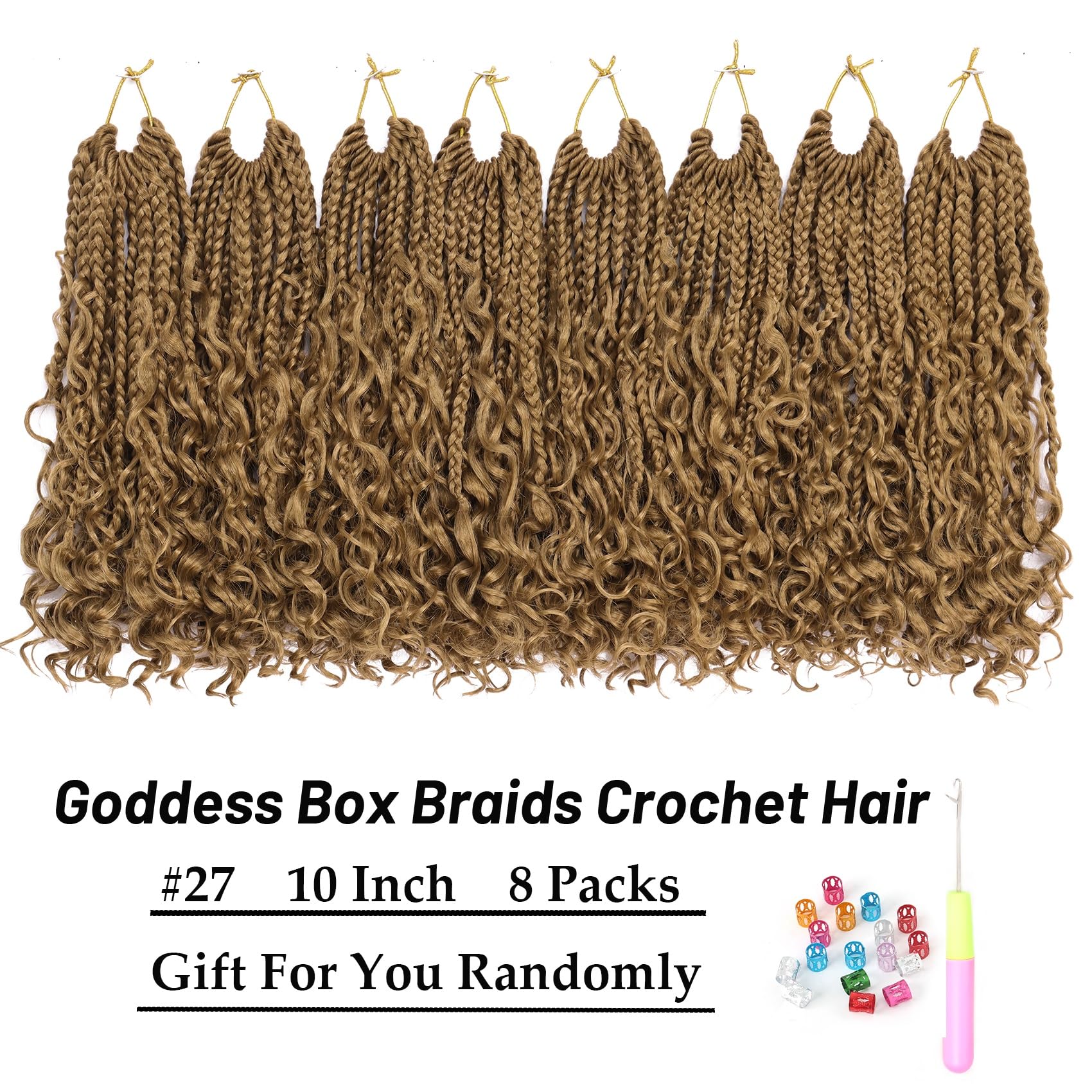 Hair Length and Package: goddess box braids crochet hair is 10 inch, 12 inch and 14 inch, 16 strands one pack, 8-9 packs are enough to make a full head. Hair Color:1B, #2 , #27 , #30 , 1B /27 color, 1B/30, T30/27,T30/613,Tgray color and 1B/Burgundy color. More colors are available.