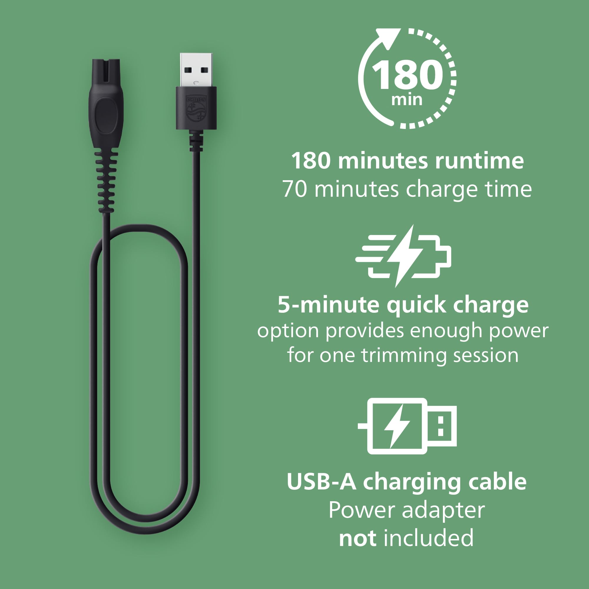 LONG-LASTING TRIMMING EXPERIENCE: powerful lithium-ion battery for up to 3 hours of runtime, with a 5-minute quick charge option; USB-A charging (power adapter not included)