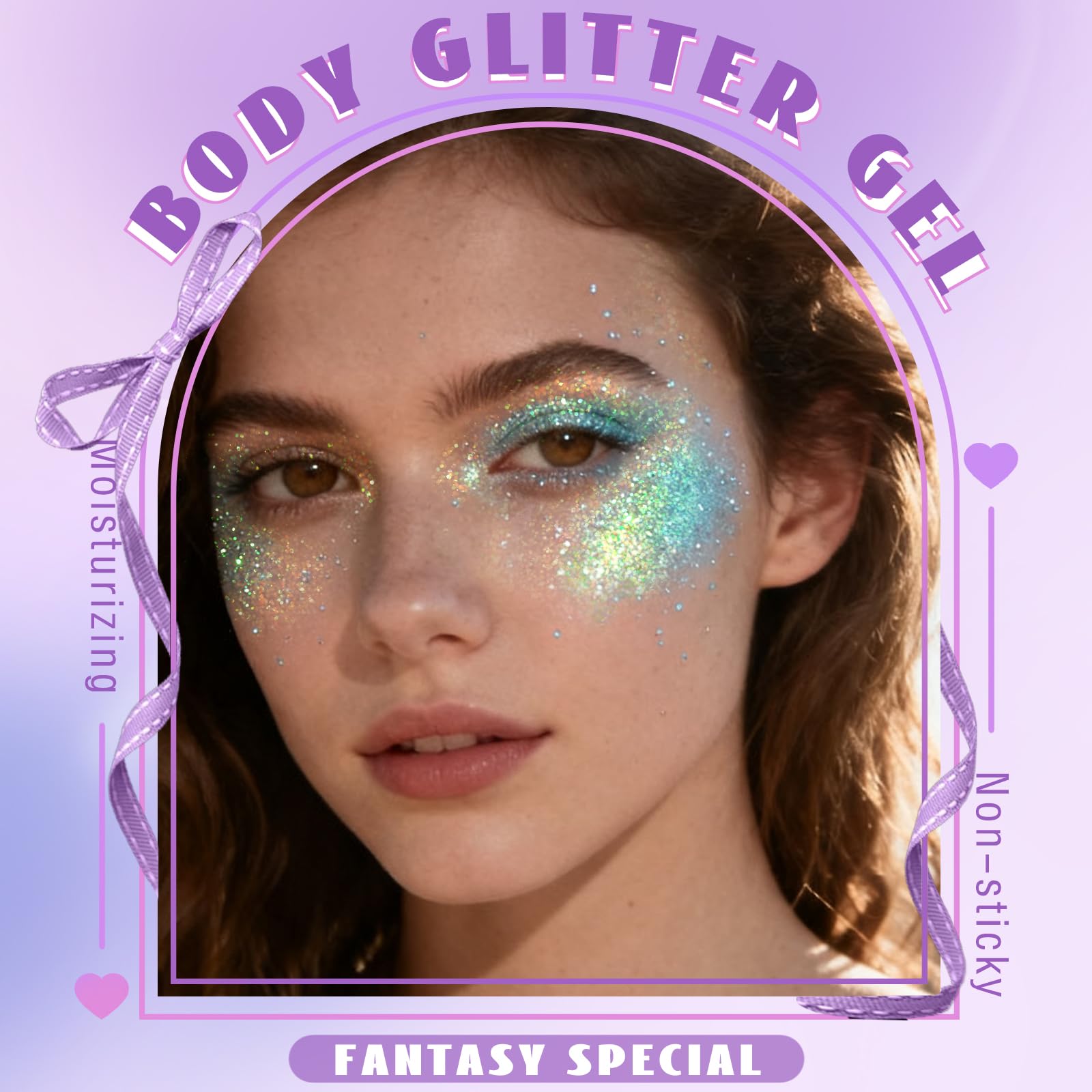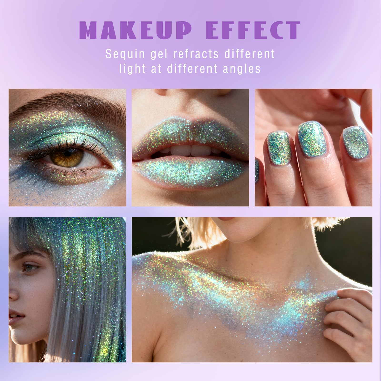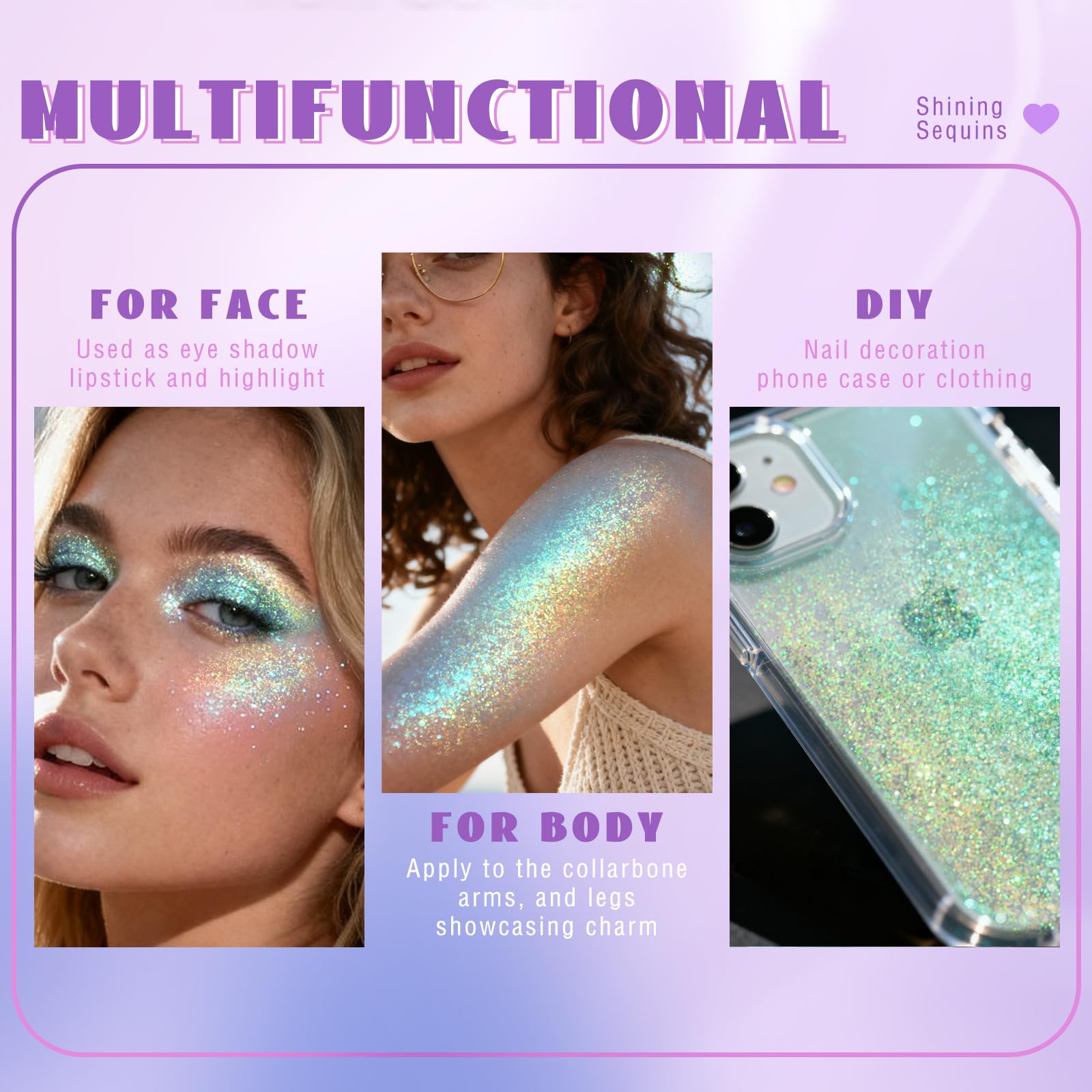 Wide Applications: This cosmetic chunky glitter gel is perfect for your body, face, eyeshadow, lips, cheeks, hair, nail art, and more, and perfect for rave hair accessories. It has a strong glowing effect in day and night, especially suitable for parties, weddings, stages and music festival, making you the glamorous focus of a passionate revelry