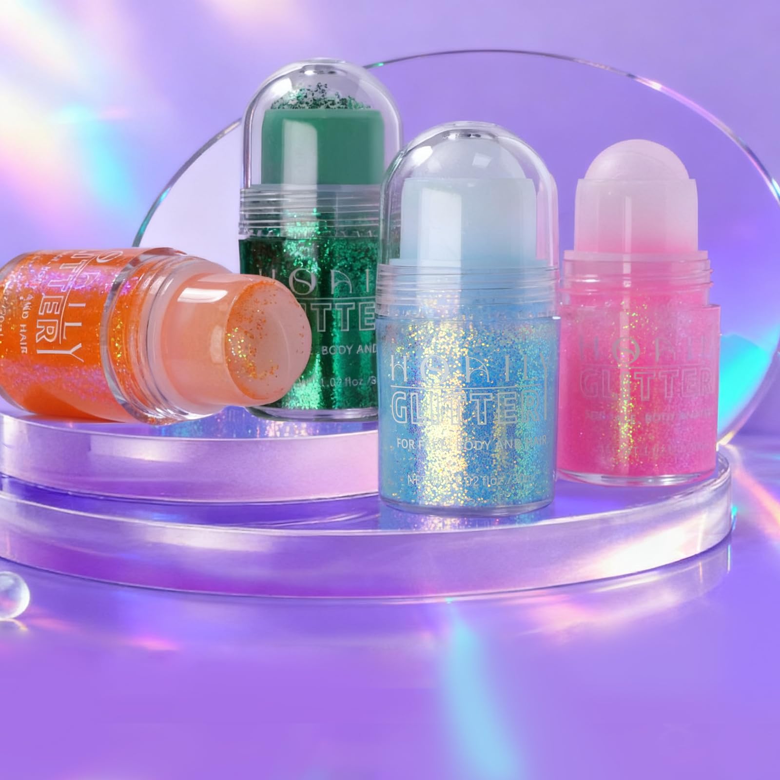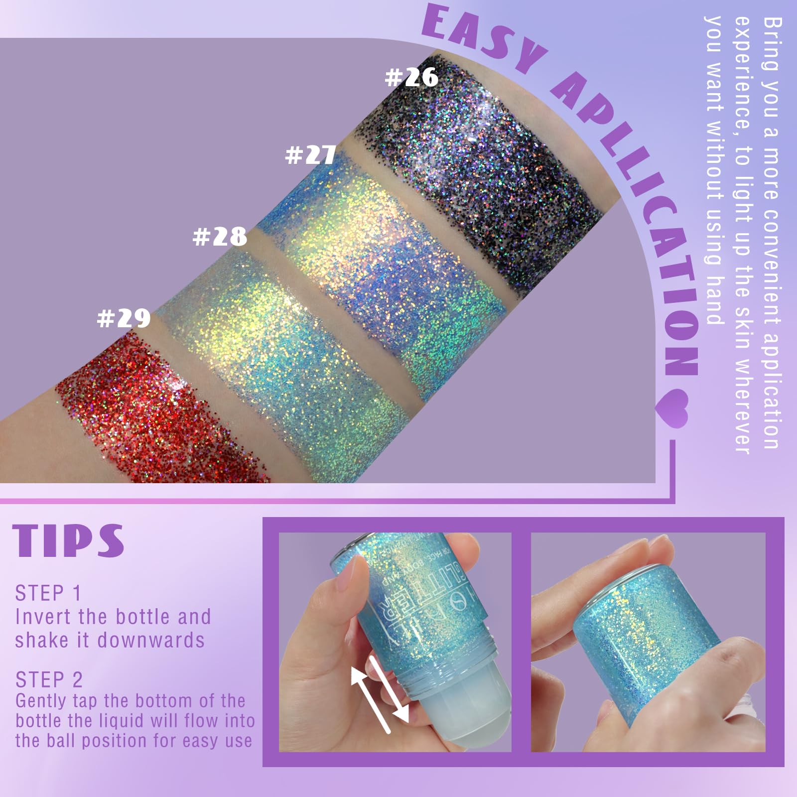 Roll On Body Glitter Gel: Our body glitter is convenient for using, roll-on design can make the glitter apply evenly to your face and body. When the ball rolling on your skin, you will feel comfortable and great touch, give you good experience without using hands
