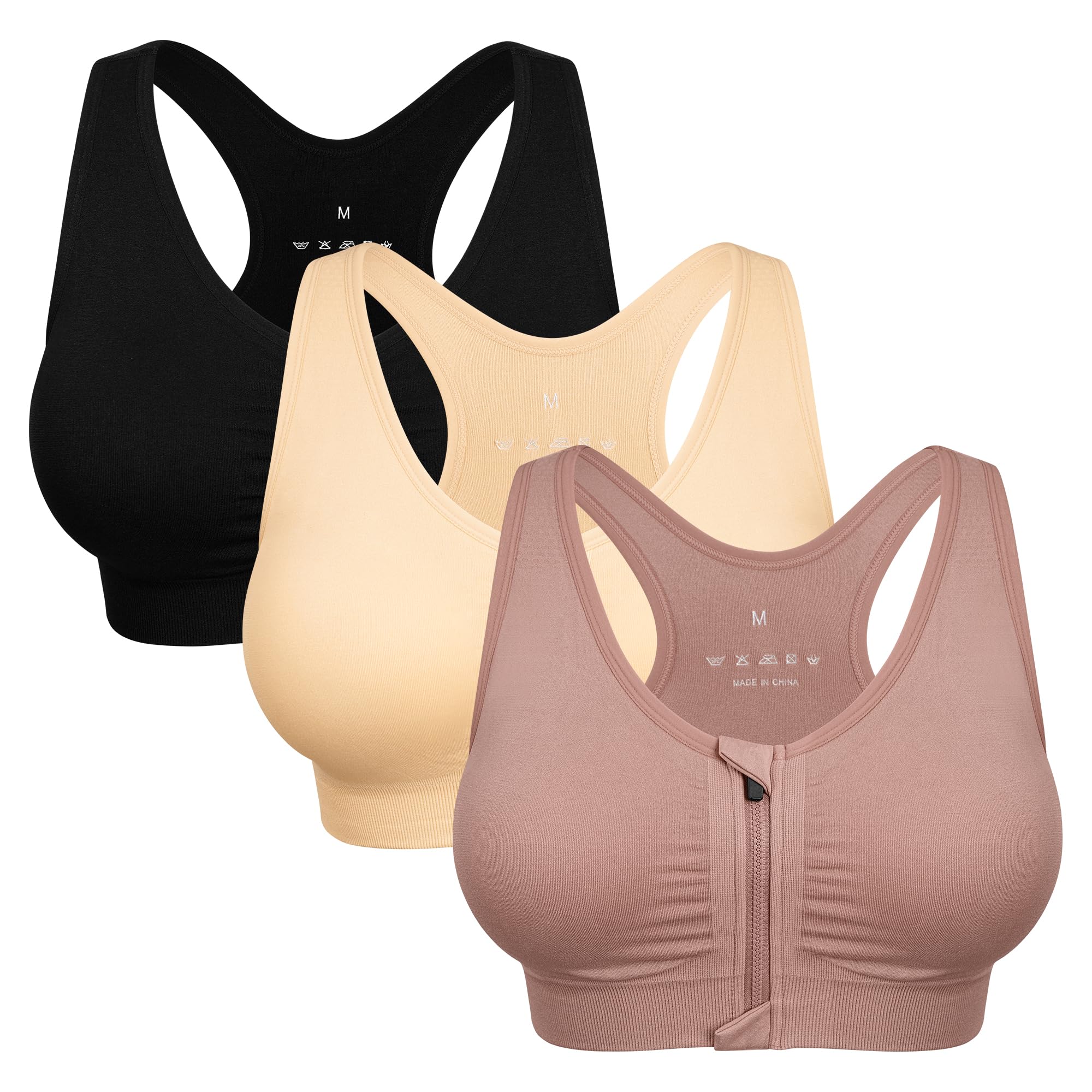 Front zipper closure-Easy to put on and take off with zipper front closure. Anti slide Zipper protect from sliding down when doing exercise. Protective layer of clothe covers the zipper on the inside to prevent scratching your skin