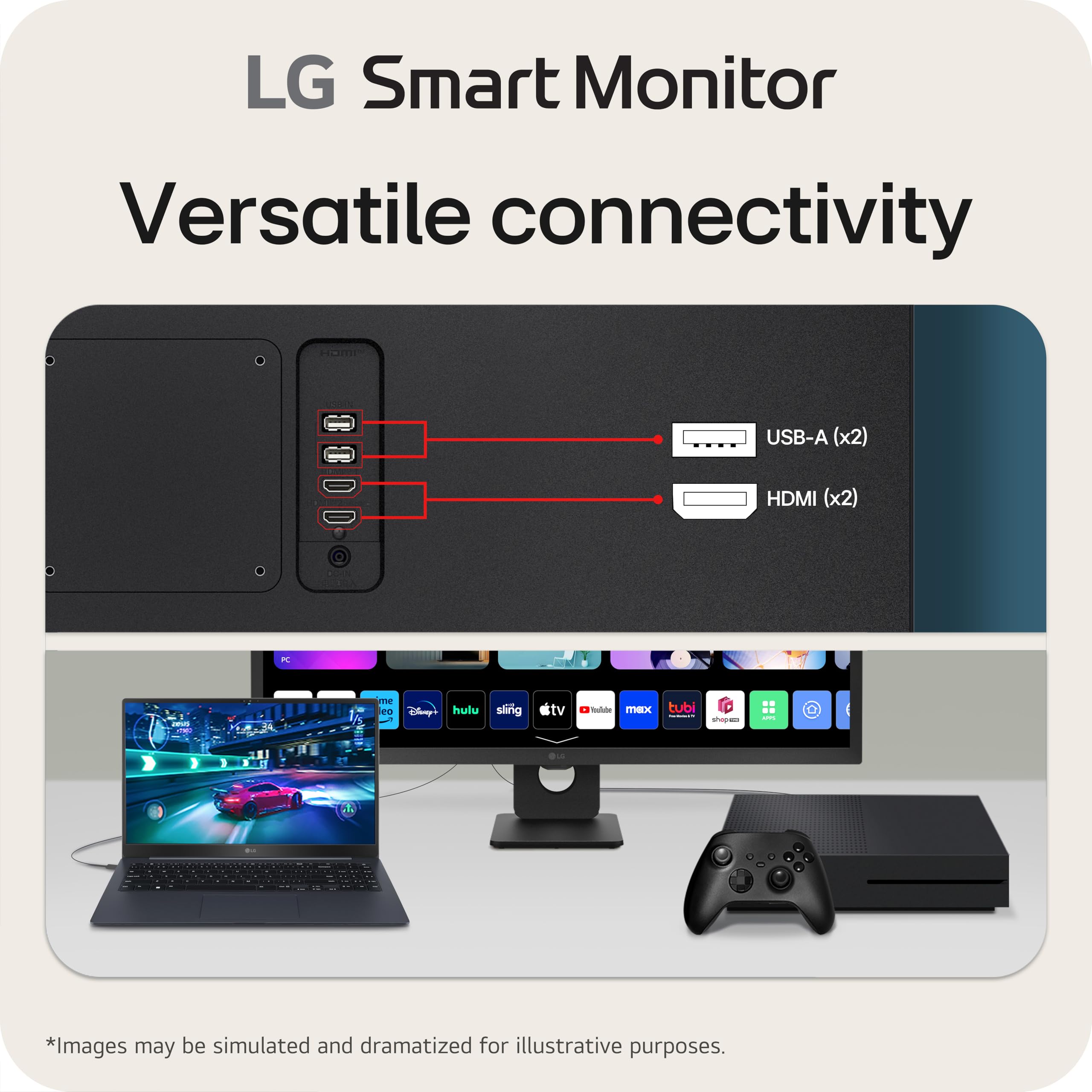 LG 32" Smart Monitor Intro - LG Smart Monitor is designed for multitasking while you work, play and watch. Connect the 32” display to a laptop, desktop or gaming console to immerse yourself in your work or games. Or, with the display’s LG webOS built-in, you can watch favorite shows from your favorite streaming apps.