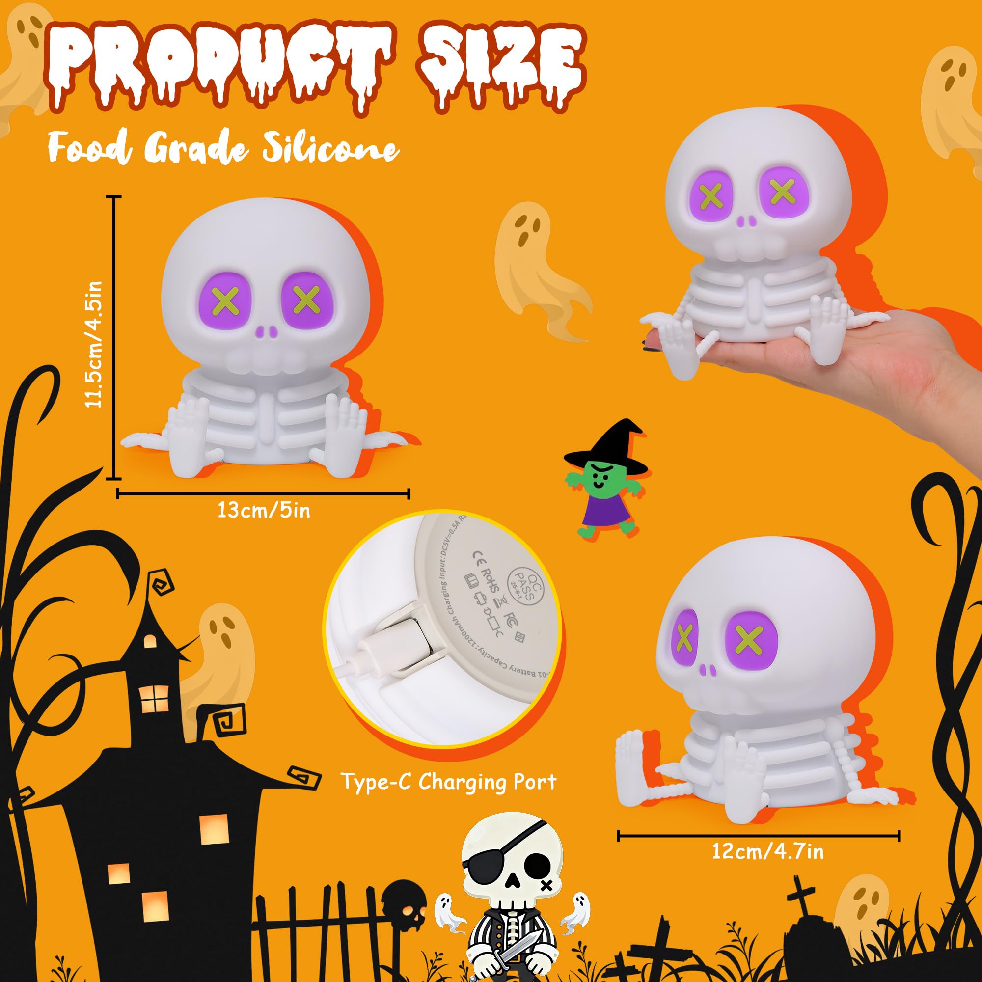 Safe Sleeping Night Light: Unique skeleton shape nursery night light, made from super-soft, BPA-free silicone, it is completely safe for children to touch and squeeze, providing a comforting and tactile experience.