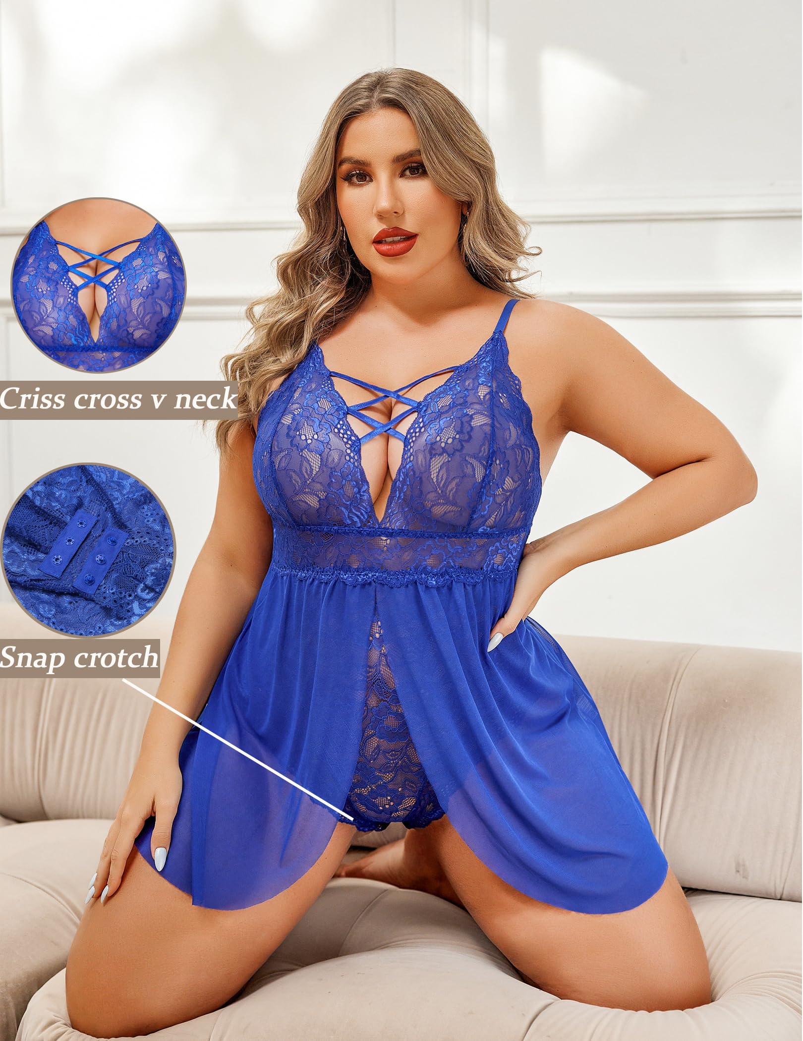 Details: Sexy babydoll lingerie with full lace cups and criss-cross detailing, adjustable spaghetti straps, lace underbust band, and mesh skirt with vented front, all this features allows this chemise easy to fit and comfortable to wear