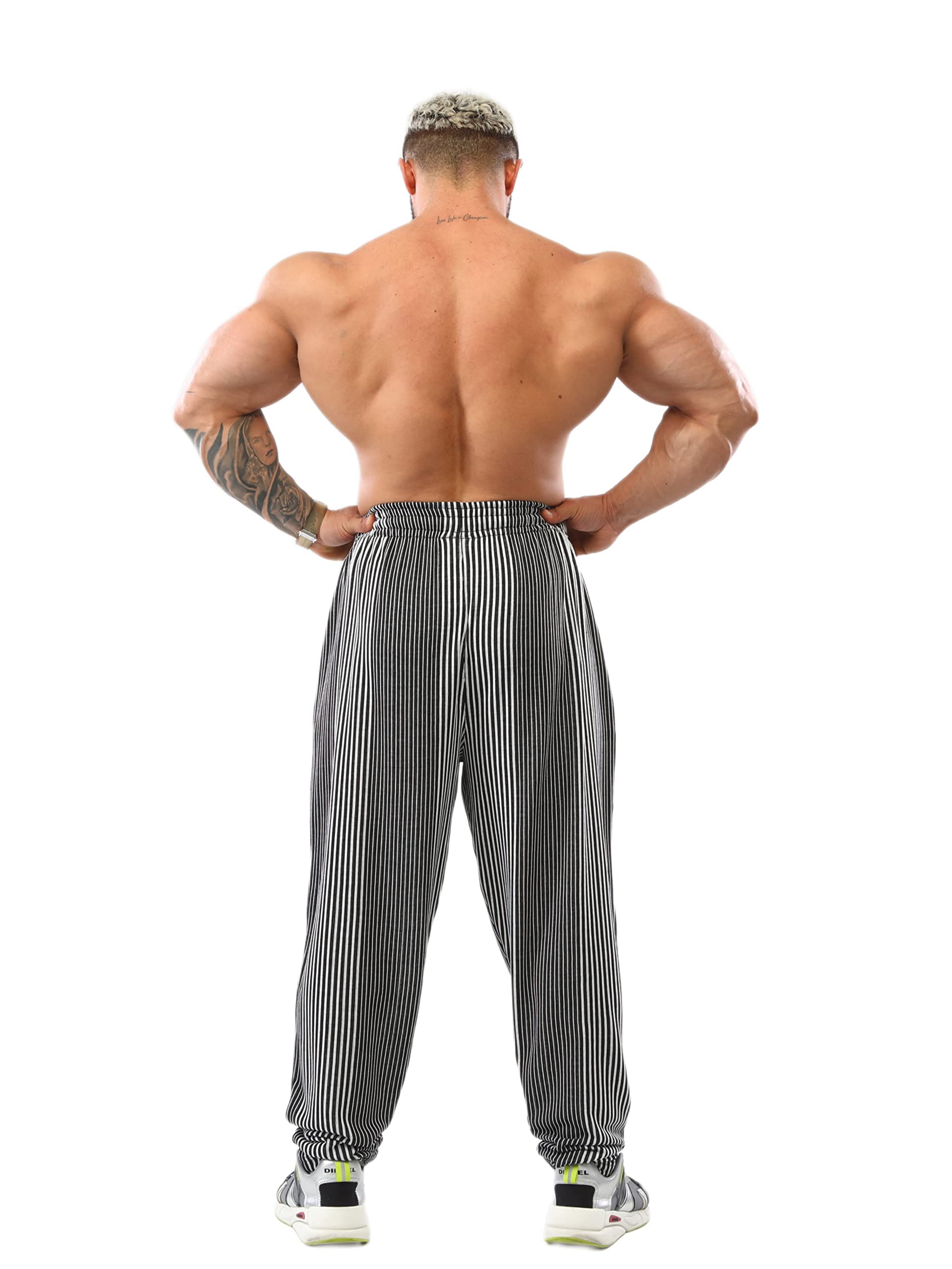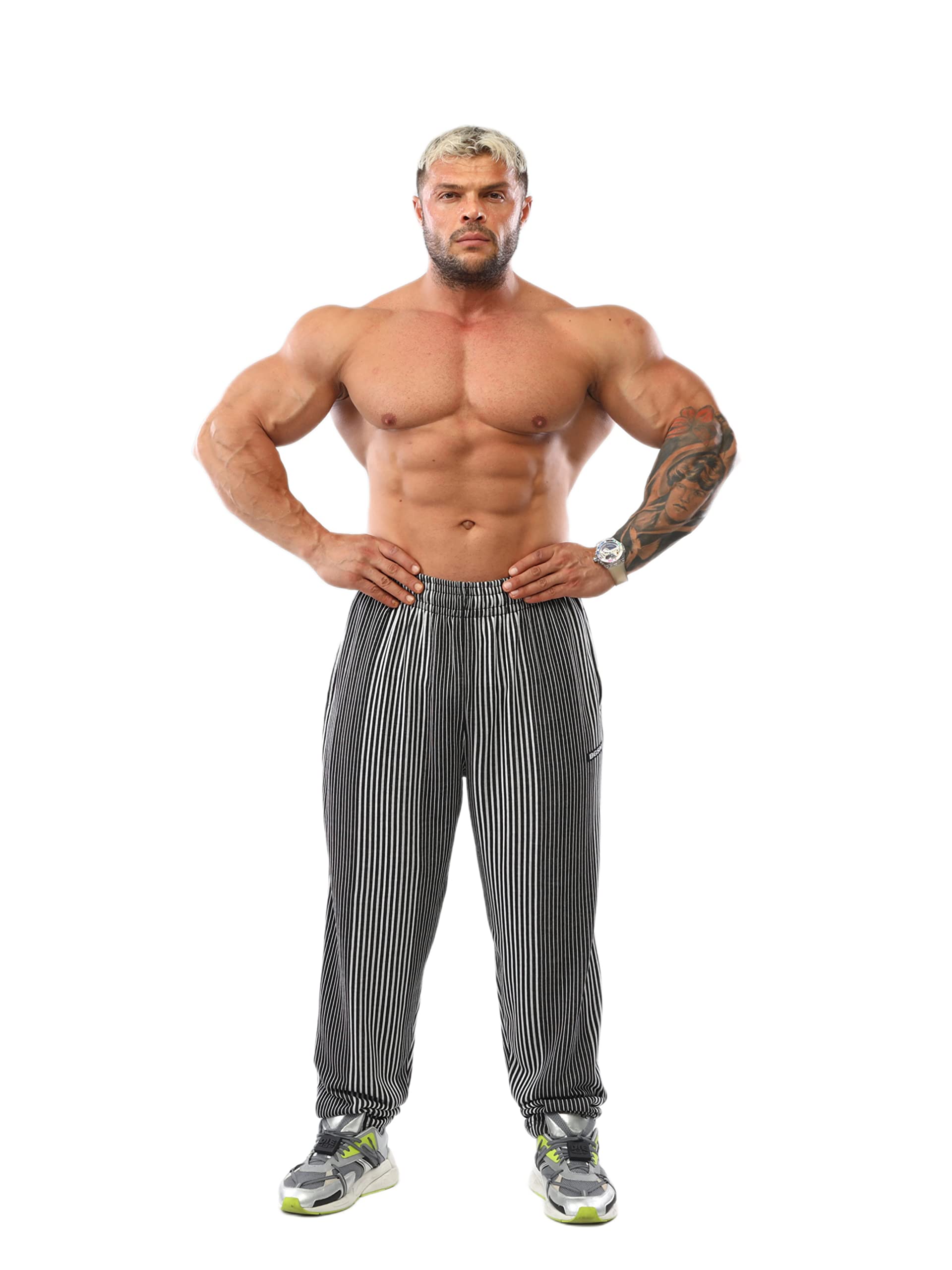 Cut Style & Form ➢ These sweatpants are produced with a wider cut than normal sweatpants. It is produced for large and muscular body types with its wide leg and hip cut. Wide hip and leg cuts taper downwards. The trousers that look draped in thin body types will be regular in muscular or large body types.