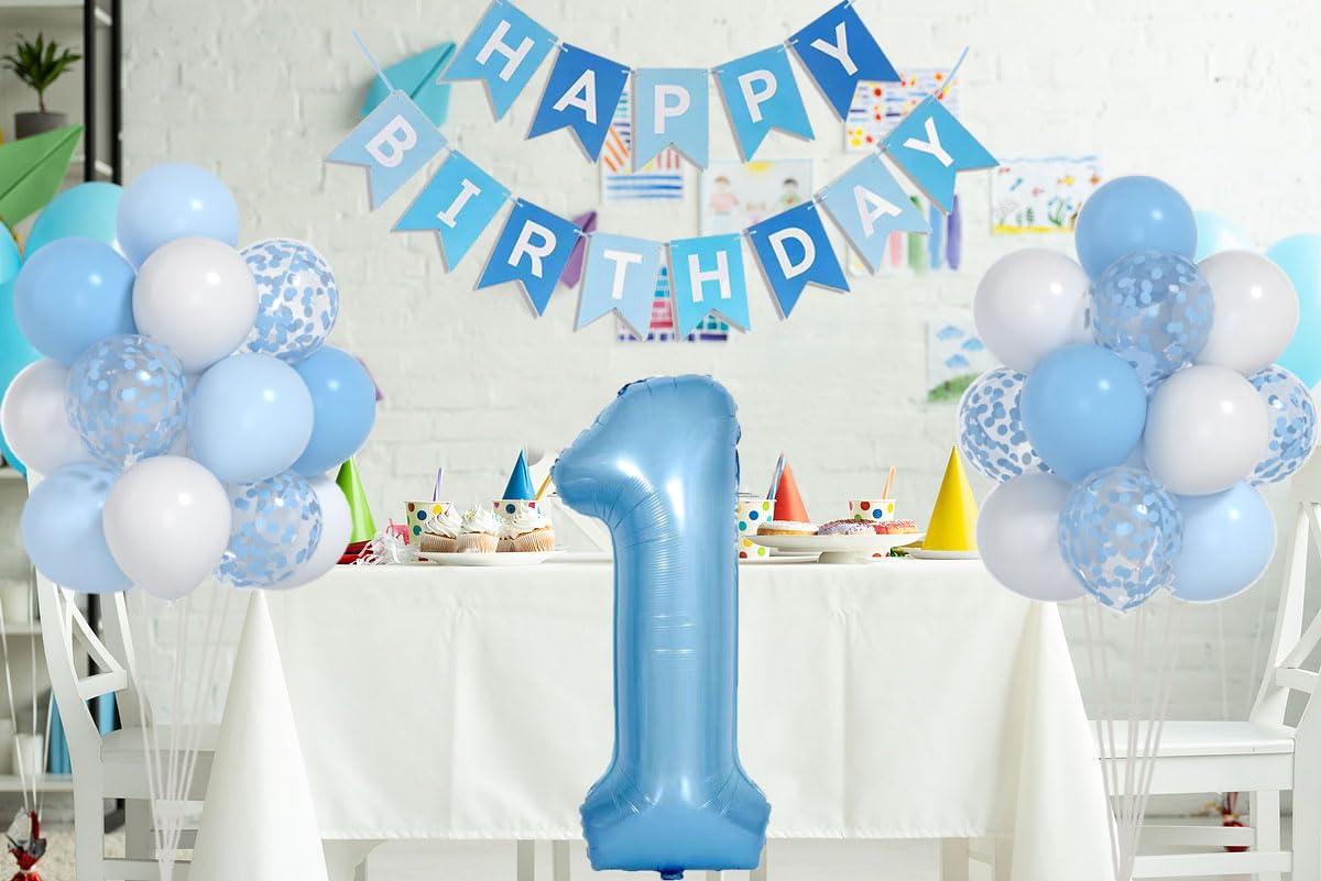 【EASY TO ASSEMBLE】The blue and white balloons and 1 balloon are extremely easy to inflate and string up. The number 1 balloos will seal automatically after being inflated, don't need additional knot. You can fully use your imagination and make balloon decorations of different shapes.